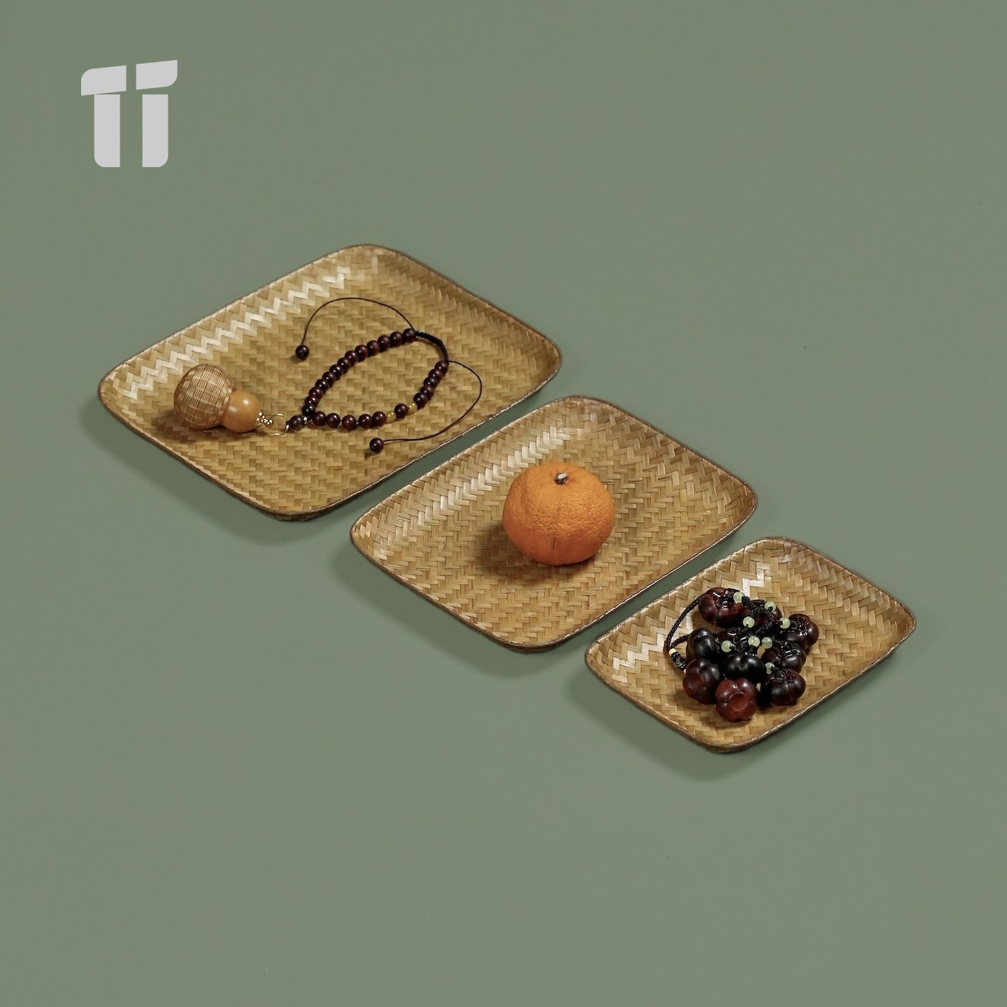 📚 竹编茶点盘中式零食盘子果盘果篮小提篮竹制复古茶室装饰
