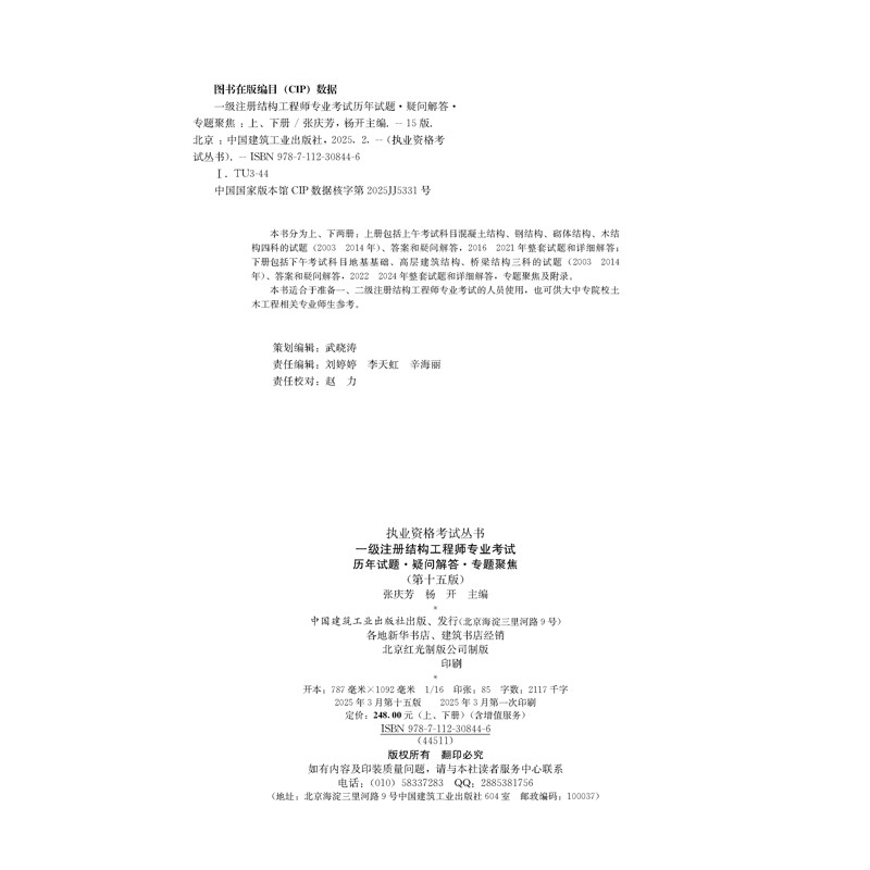 📚 2025一级注册结构工程师专业考试历年试题·疑问解答·专题聚焦(第十五版)(上、下册)张庆芳 杨开建筑考试其他