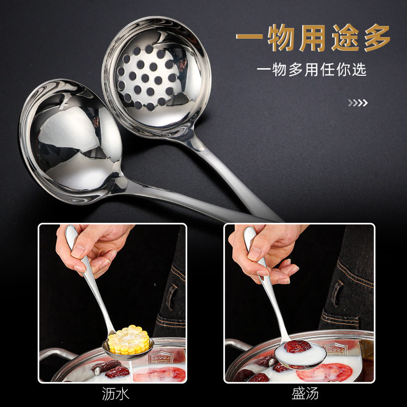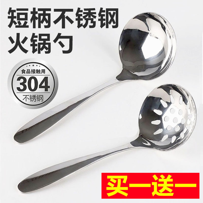 📚 不锈钢火锅大号短柄汤勺个人漏勺汤勺子盛粥家用大头勺子套装