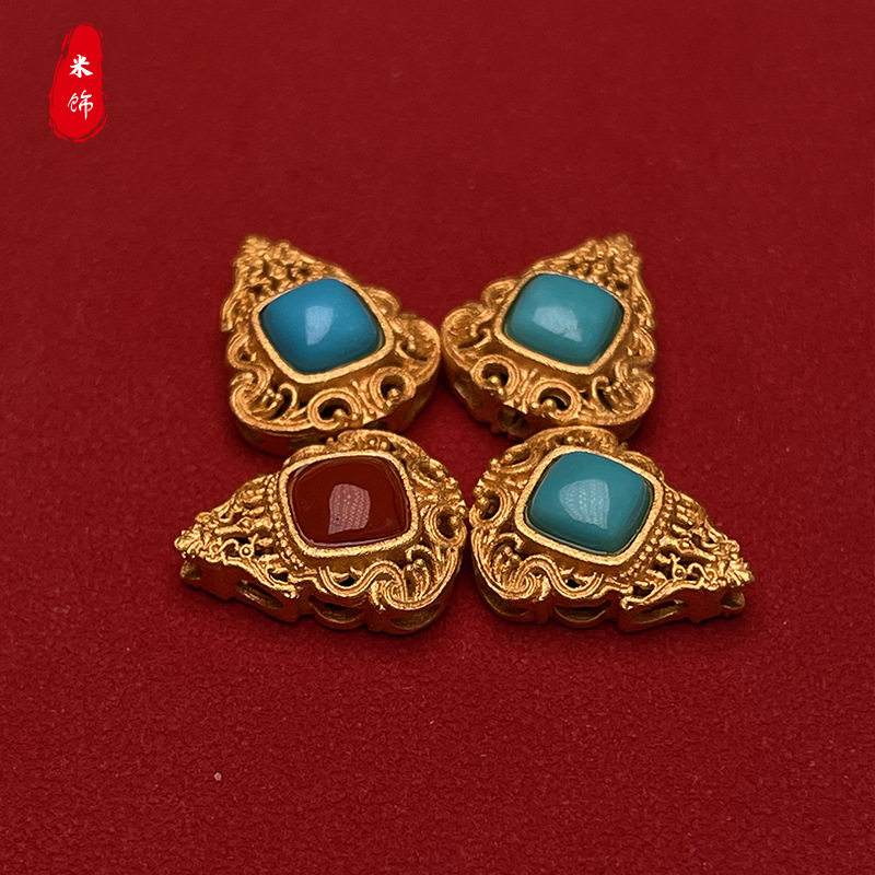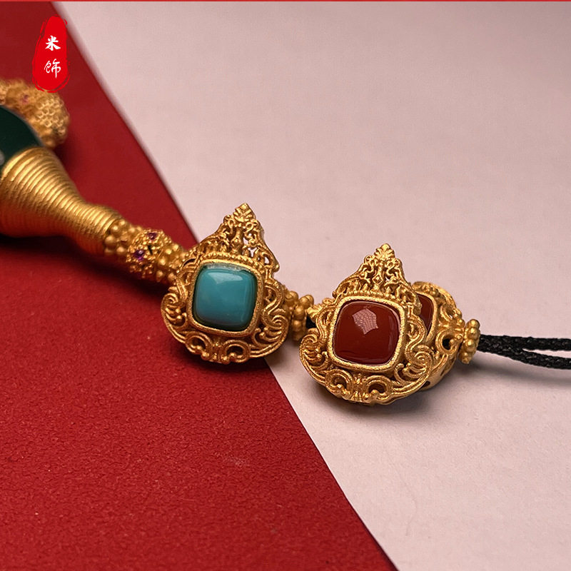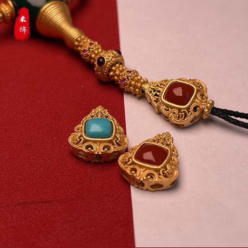 📚 925银原矿绿松南红镶嵌背云卡子线束榫卯弟子珠星月柏香籽108套装