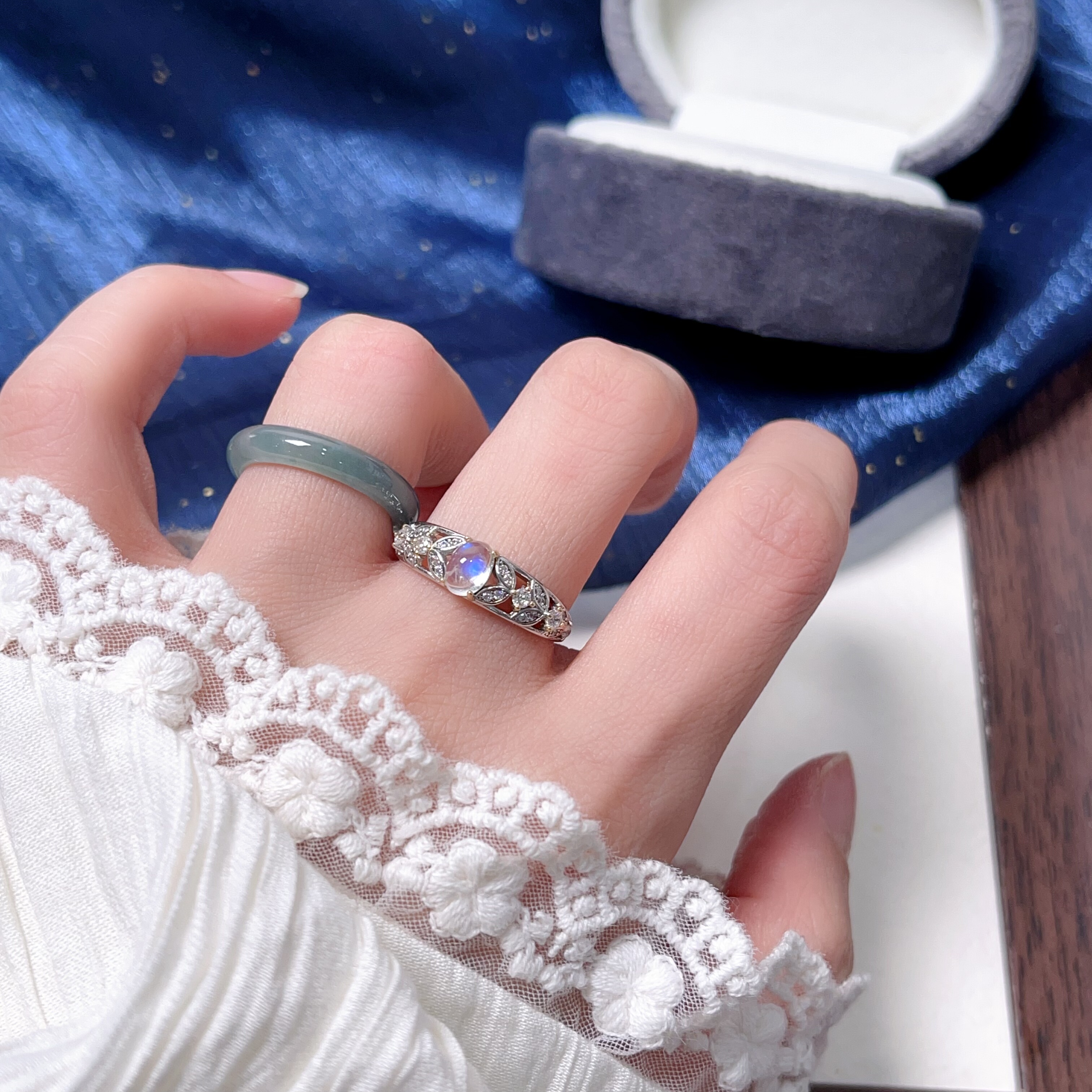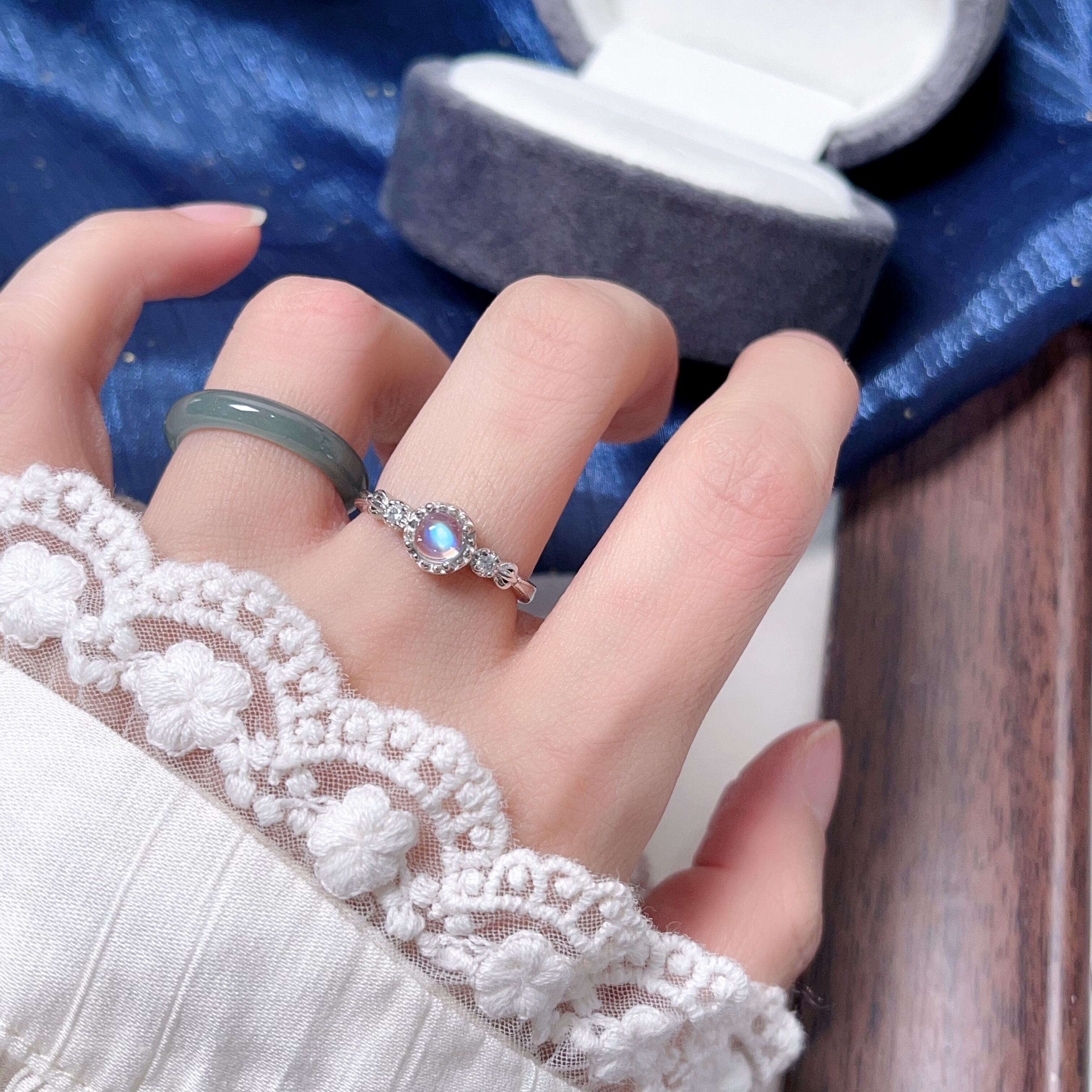 📚 2.2【月光石戒指】s925纯银马岛月光石戒指印度料蓝月光可调节