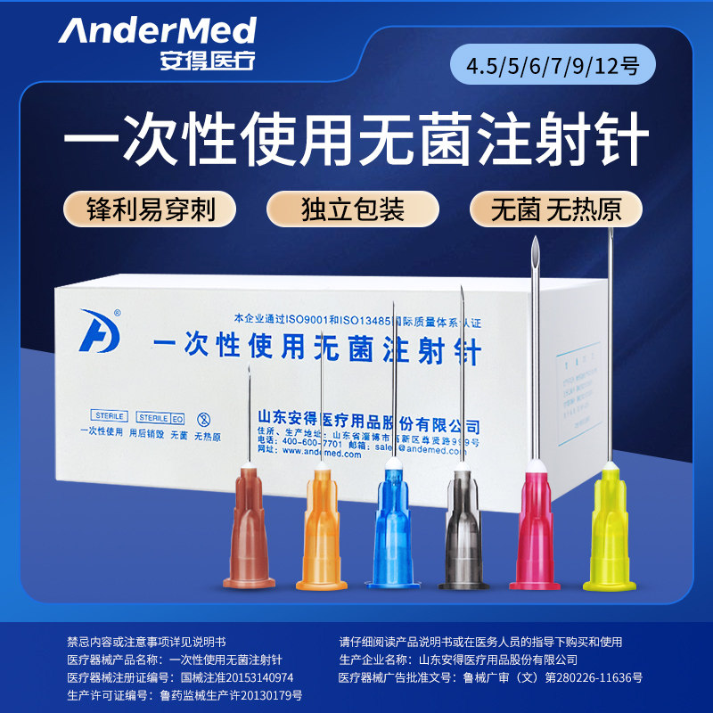 📚 安得医疗注射器针头一次性使用无菌注射长针头医用管穿刺针5/12号