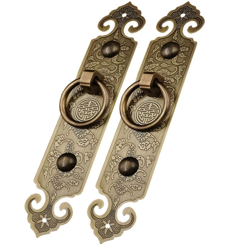 📚 中式纯铜拉手仿古大门把手复古铜门环装饰格栅老门拉环木门大拉手