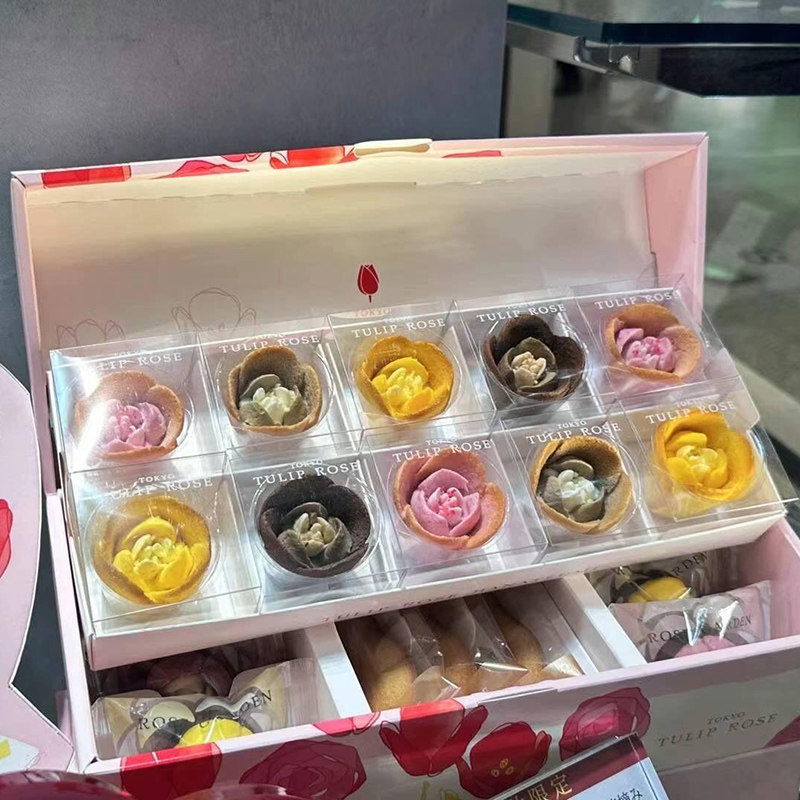 📚 日本TOKYO TULIP ROSE郁金香奶油夹心玫瑰卷草莓饼干零食伴手礼盒