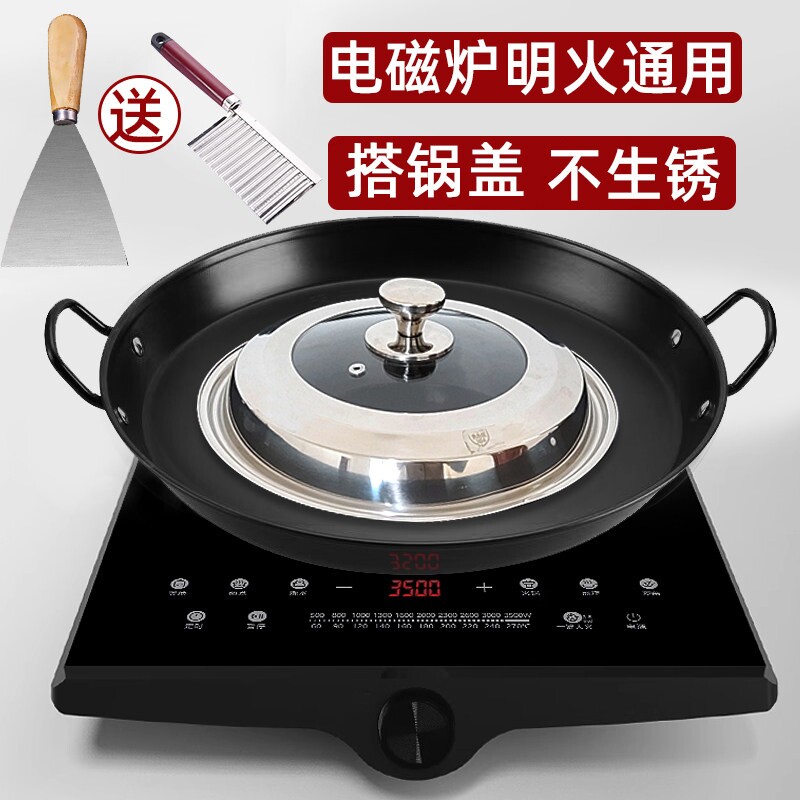 📚 贵州烙锅罗锅烙锅家用洛锅烧烤一体锅锣锅电磁炉专用咯锅铬锅铁锅