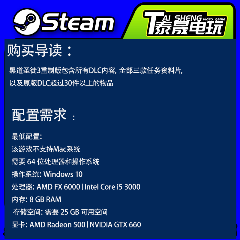 📚 PC正版 Steam国区CDKEY 黑道圣徒3 重制版 复刻版 正版激活码入库