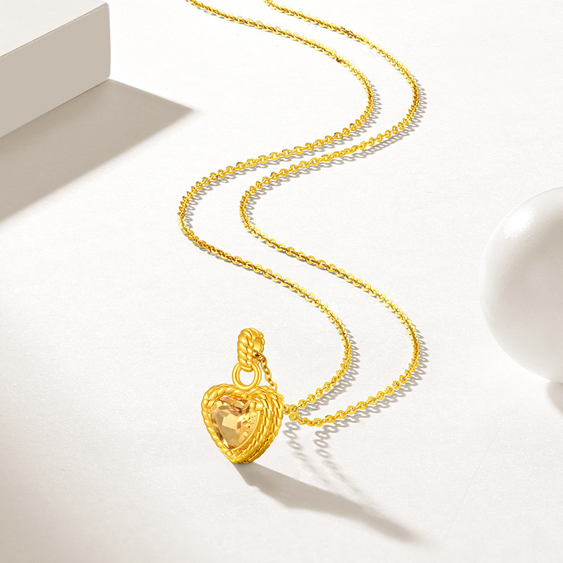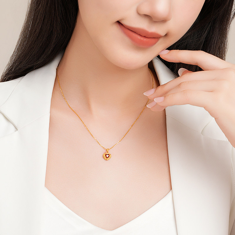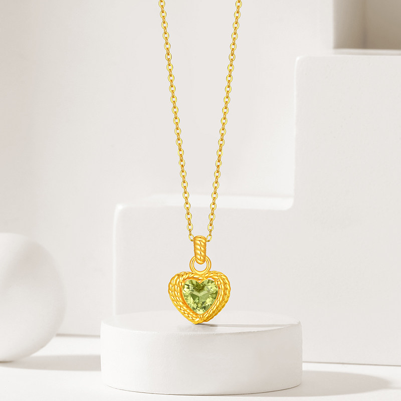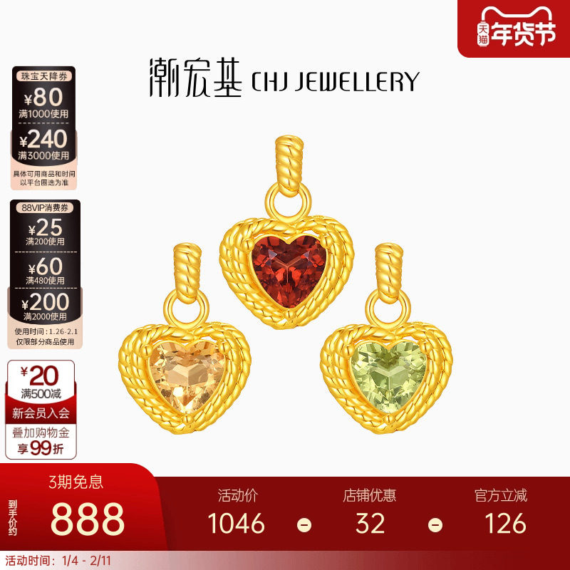 📚 潮宏基至简18k金石榴石水晶橄榄石生辰石挂坠彩金吊坠颈饰ins礼物