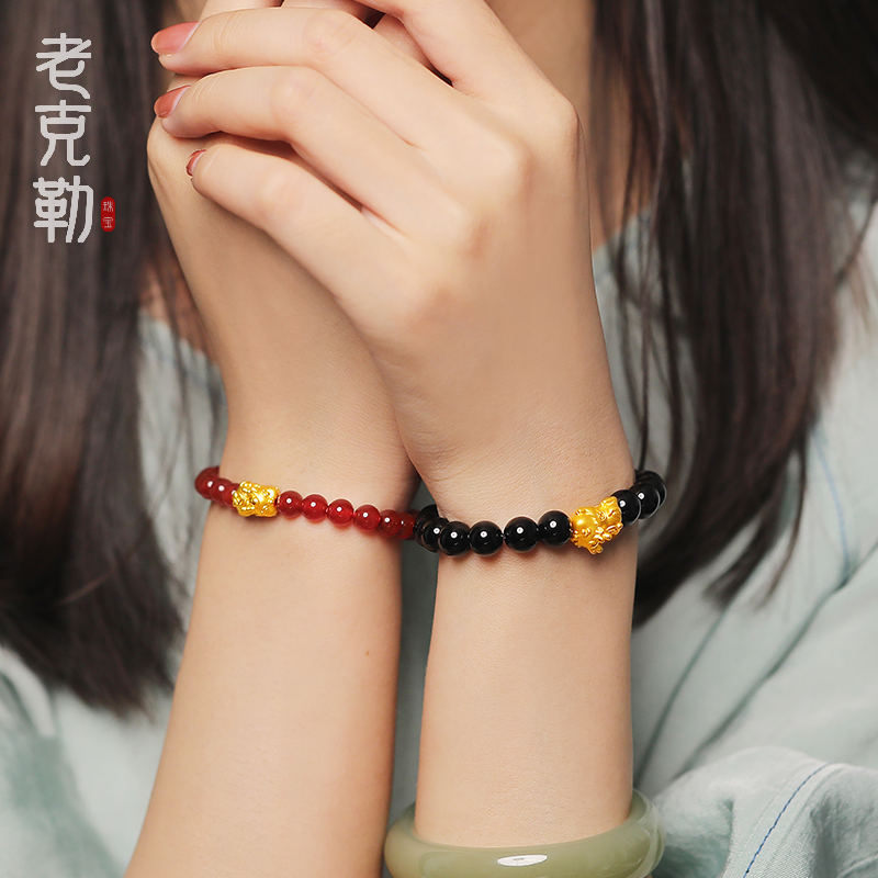 📚 老克勒3D硬金999足金黄金貔貅宝宝招财转运珠纯金手链手串男女
