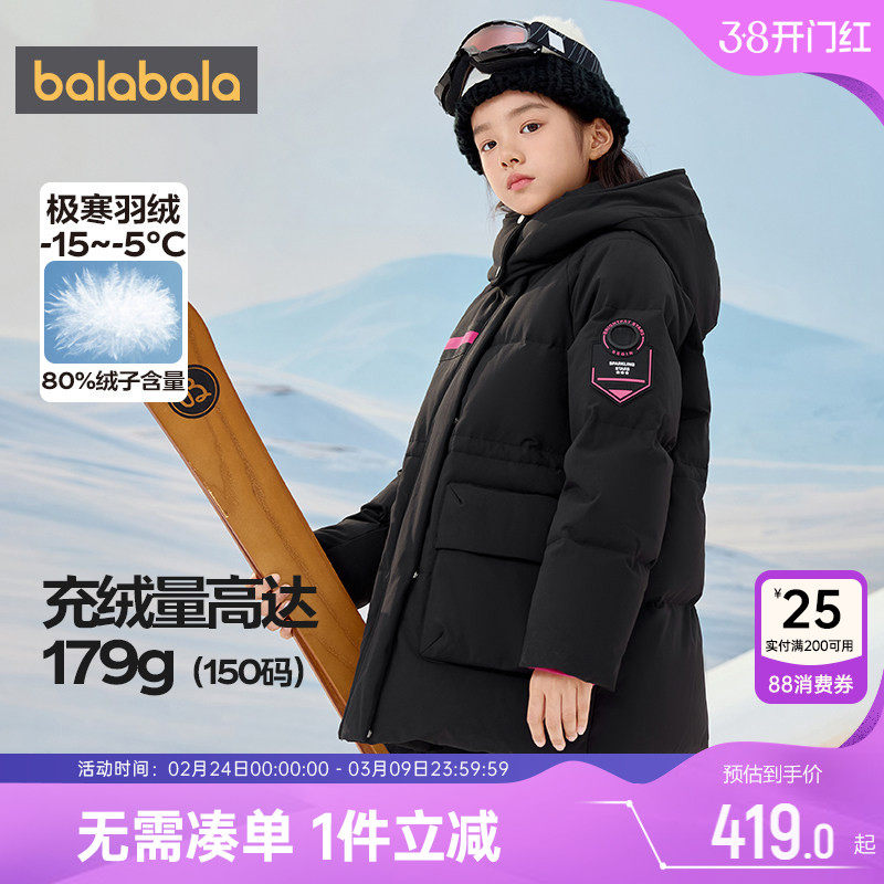 📚 巴拉巴拉女童羽绒服中大童中长款加厚外套冬装新款童装儿童黑色潮