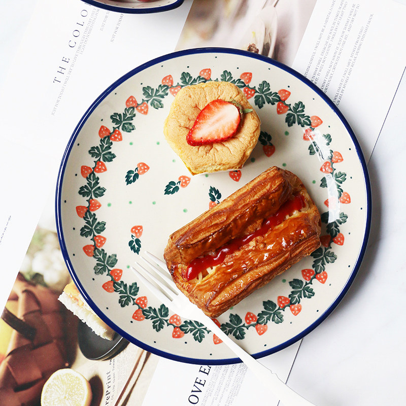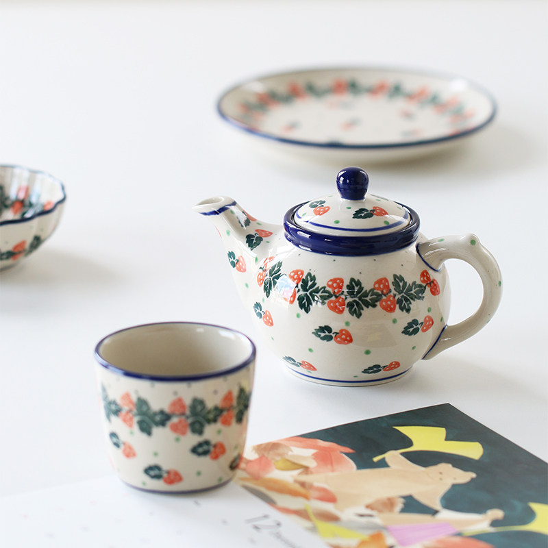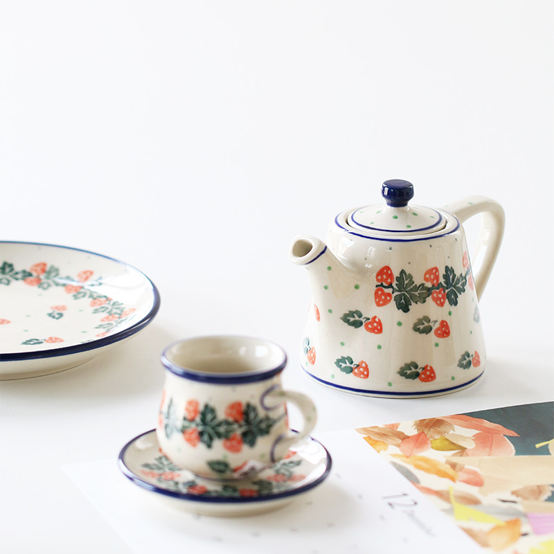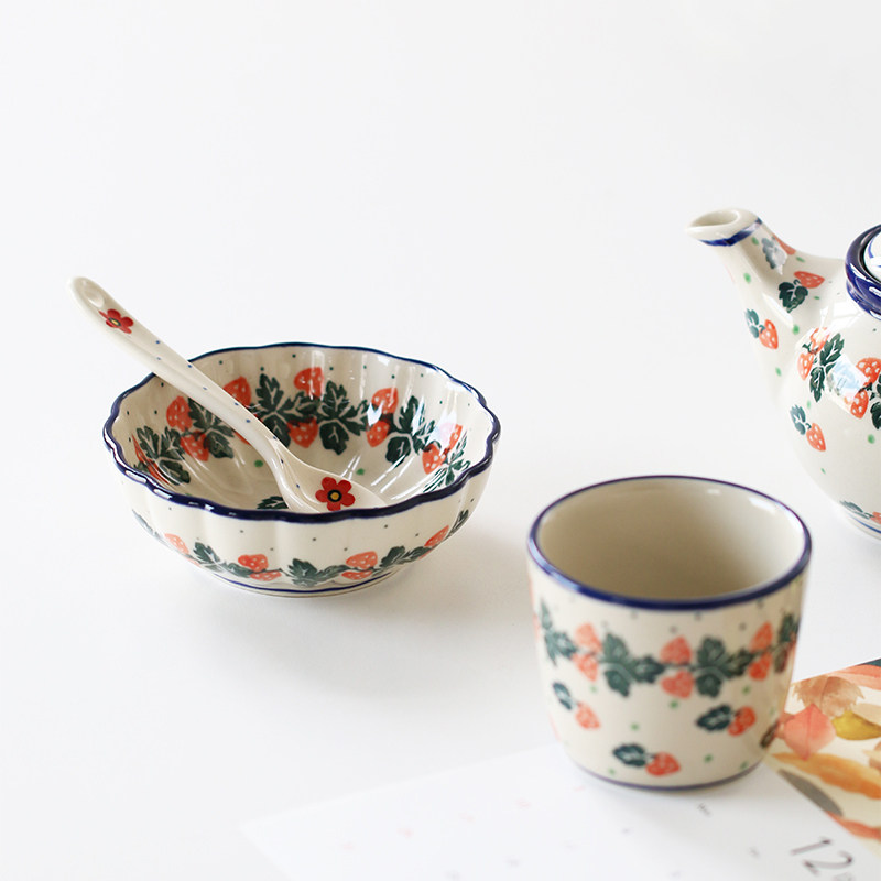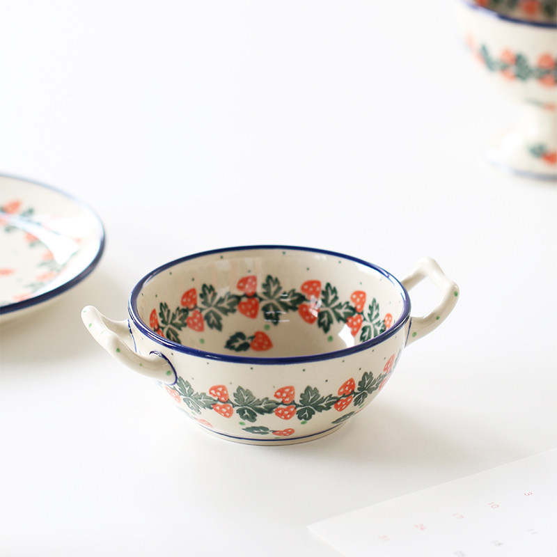 📚 MY家 - 波兰陶瓷 手绘 840X 奶油草莓 下午茶杯碟/双耳碗/餐盘