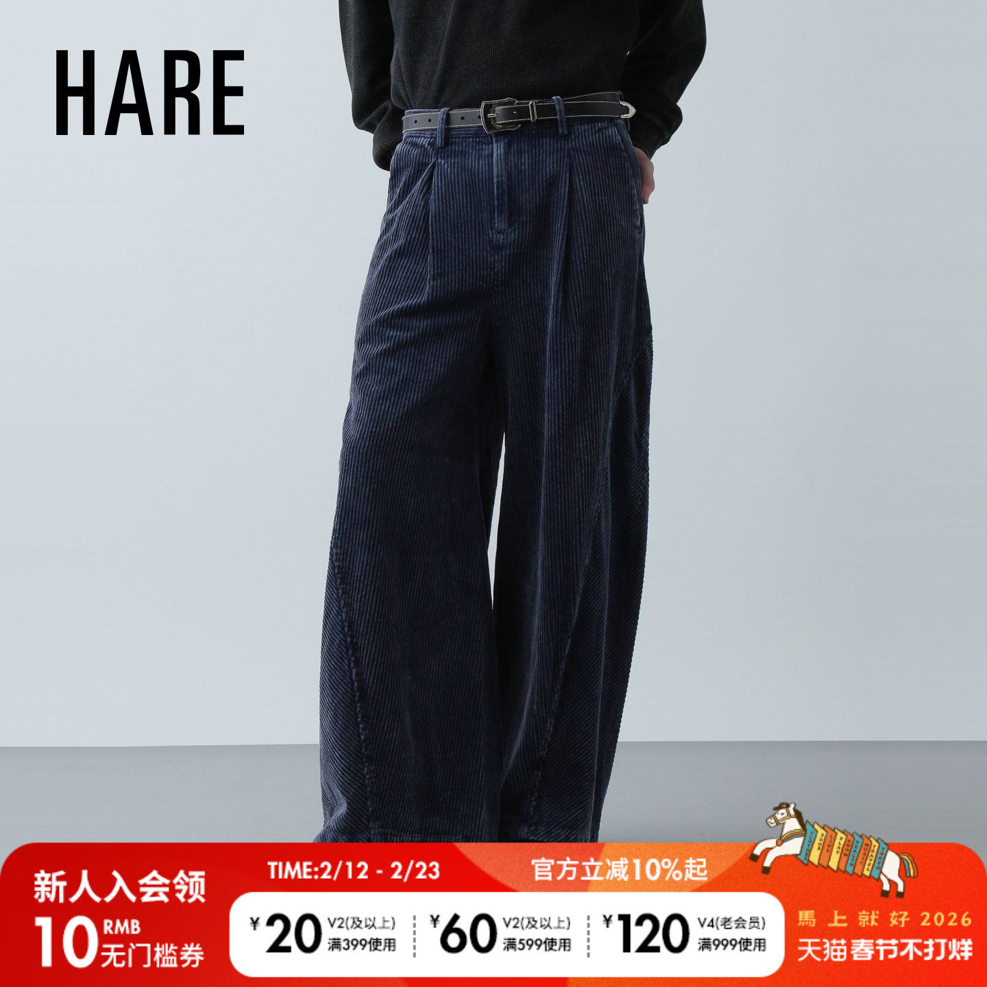 📚 HARE休闲裤男2025冬季新款复古灯芯绒宽松垂感棉质阔腿裤606696