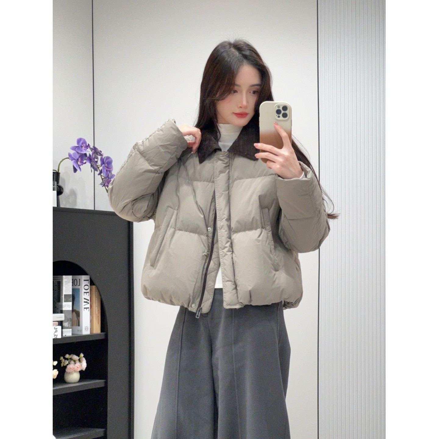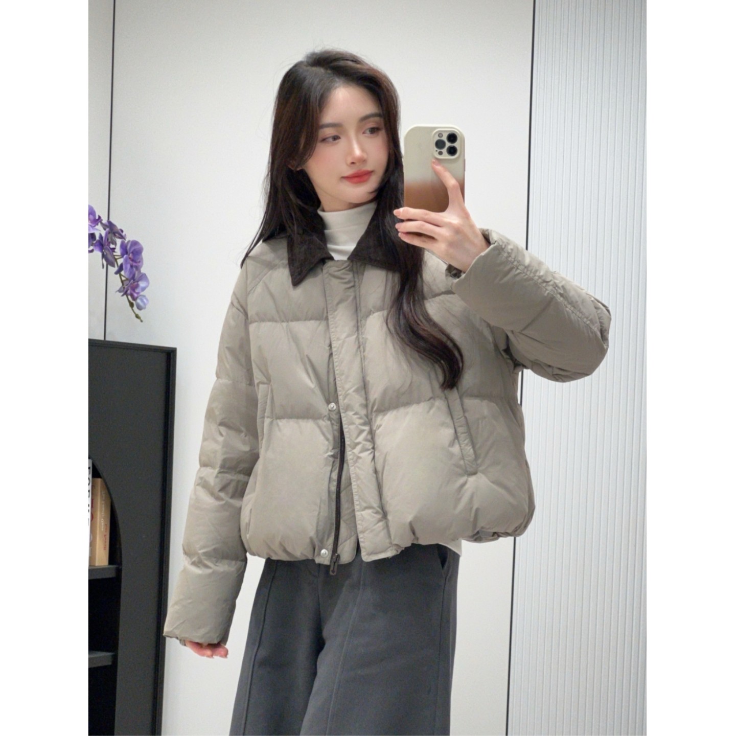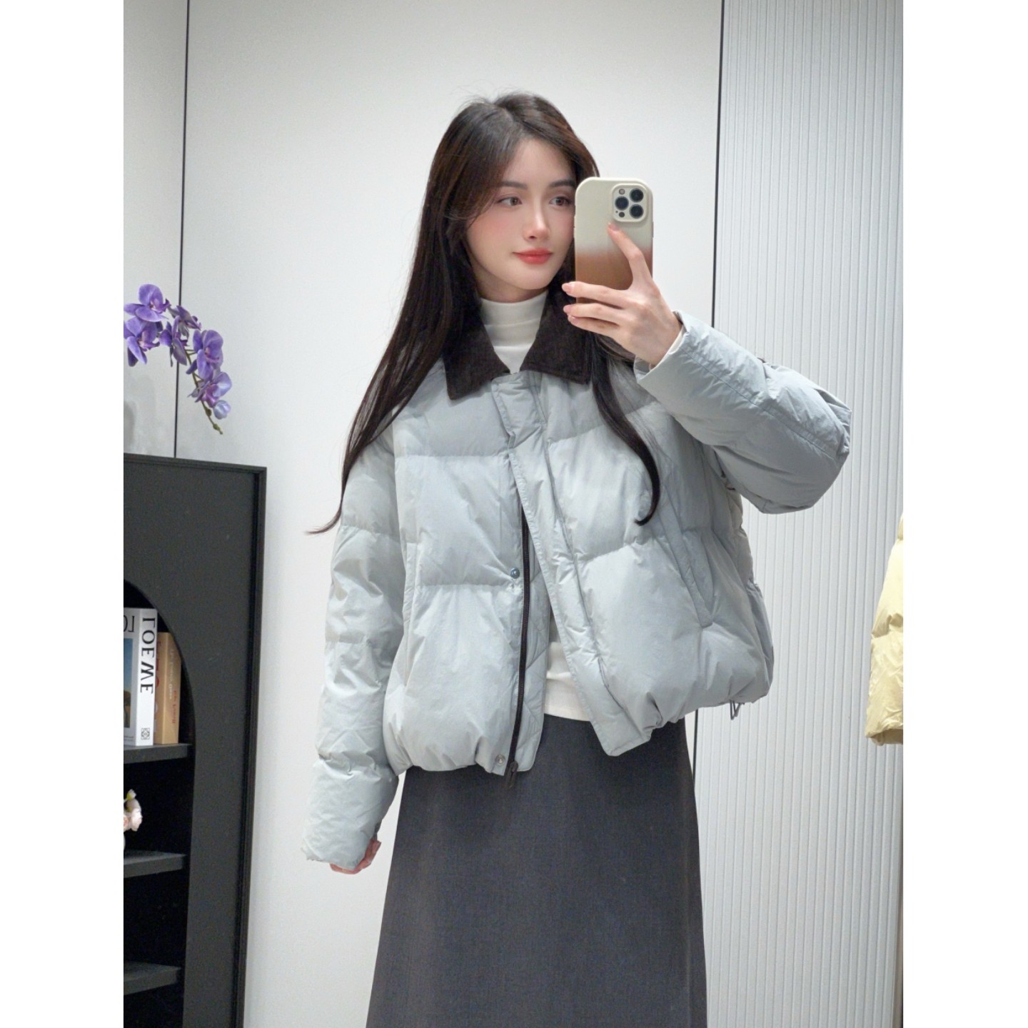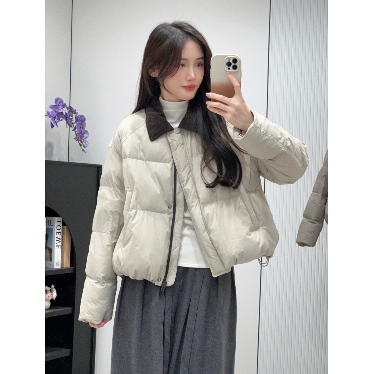 📚 韩系高级感翻领撞色羽绒服女2025冬季新款超好看90白鸭绒短款外套