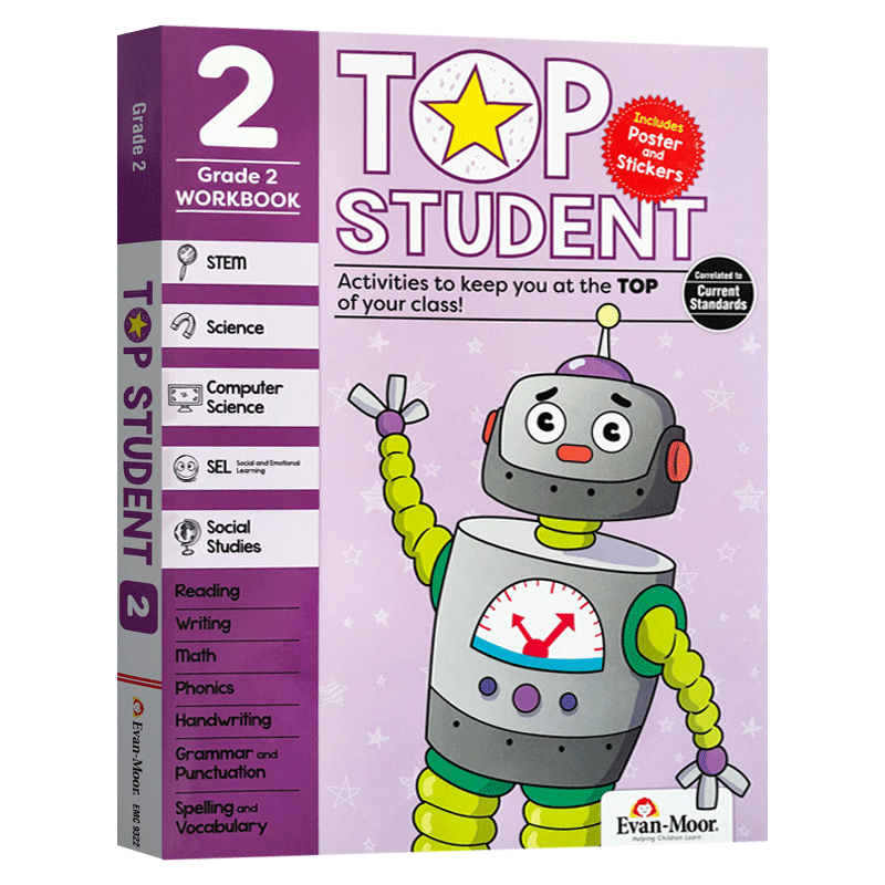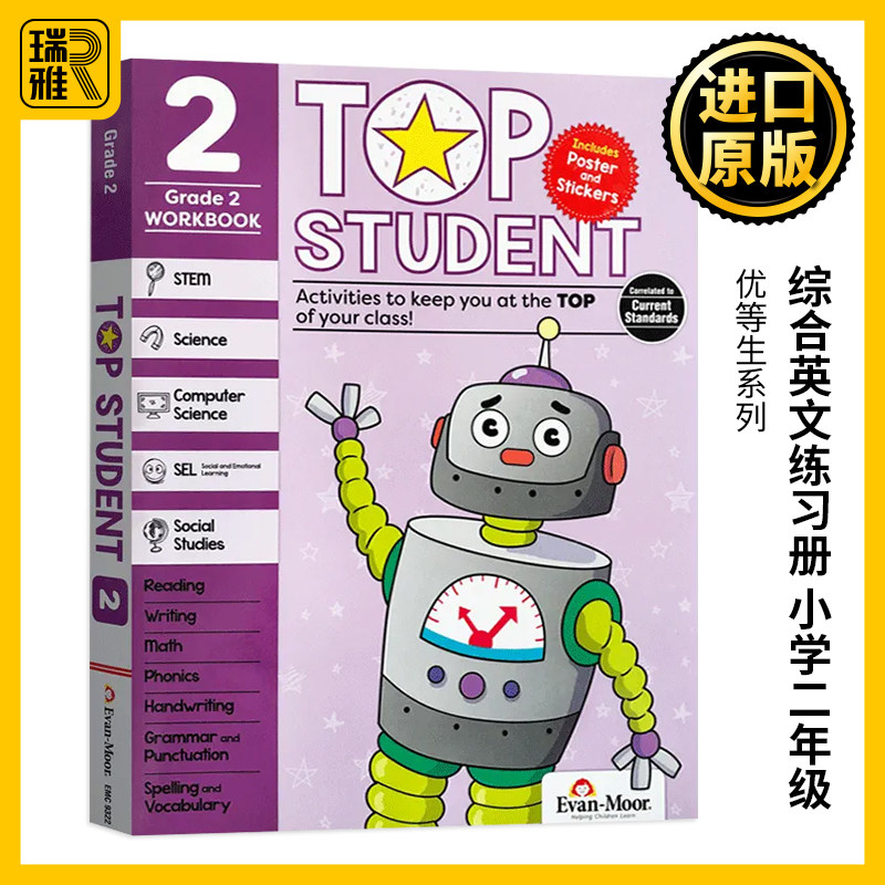 📚 优等生系列 练习册 小学二年级 英文原版 Evan-Moor Top Student Grade 2 数学STEM科学计算机社交 美国加州英语教辅教材evanmoor