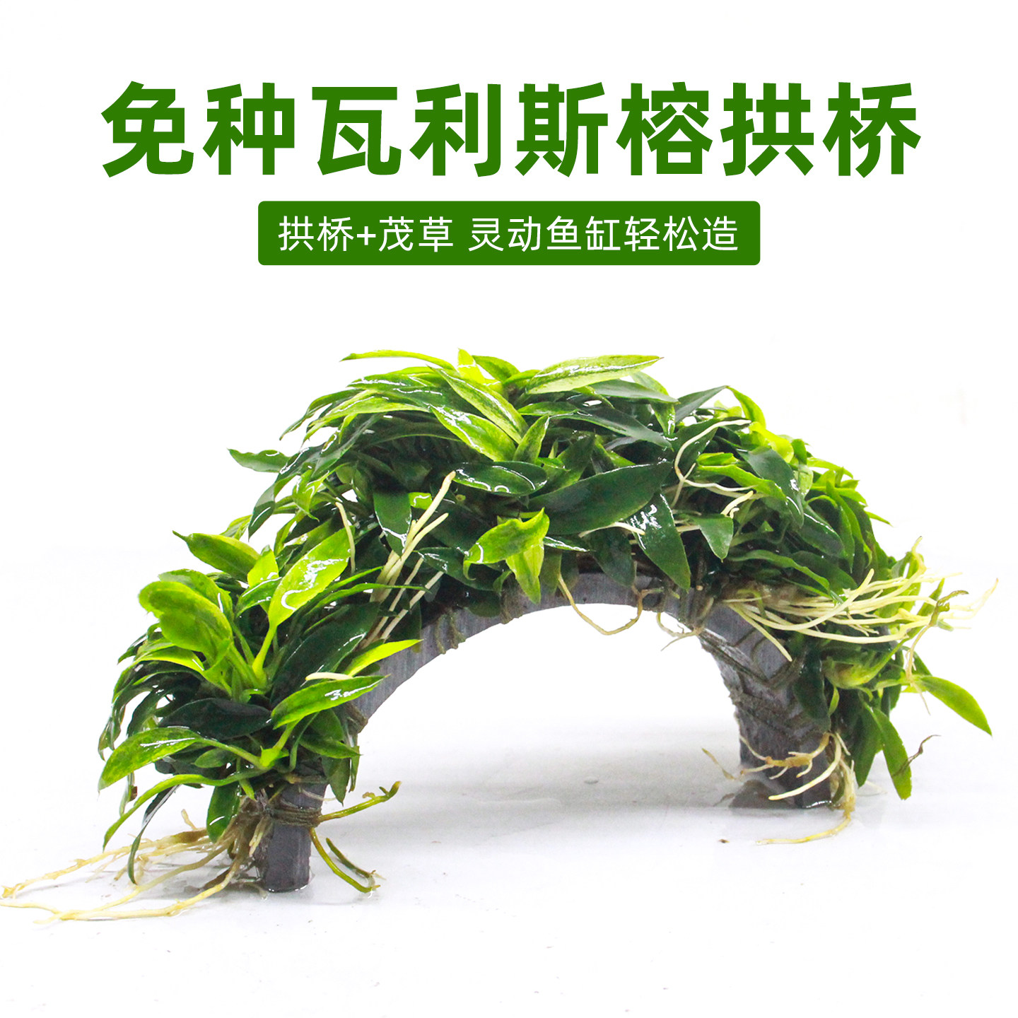 📚 鱼缸造景迷你瓦利斯榕拱桥水培植物阴性真草淡水小摆件植物真水草