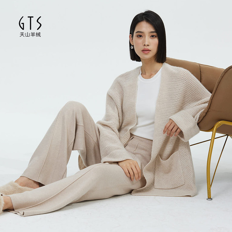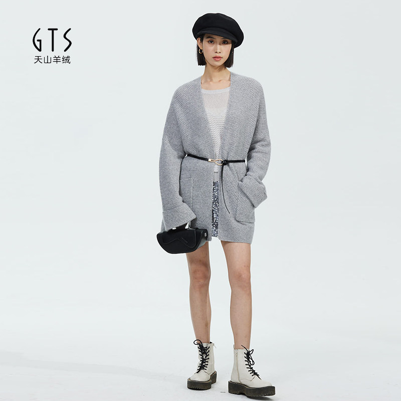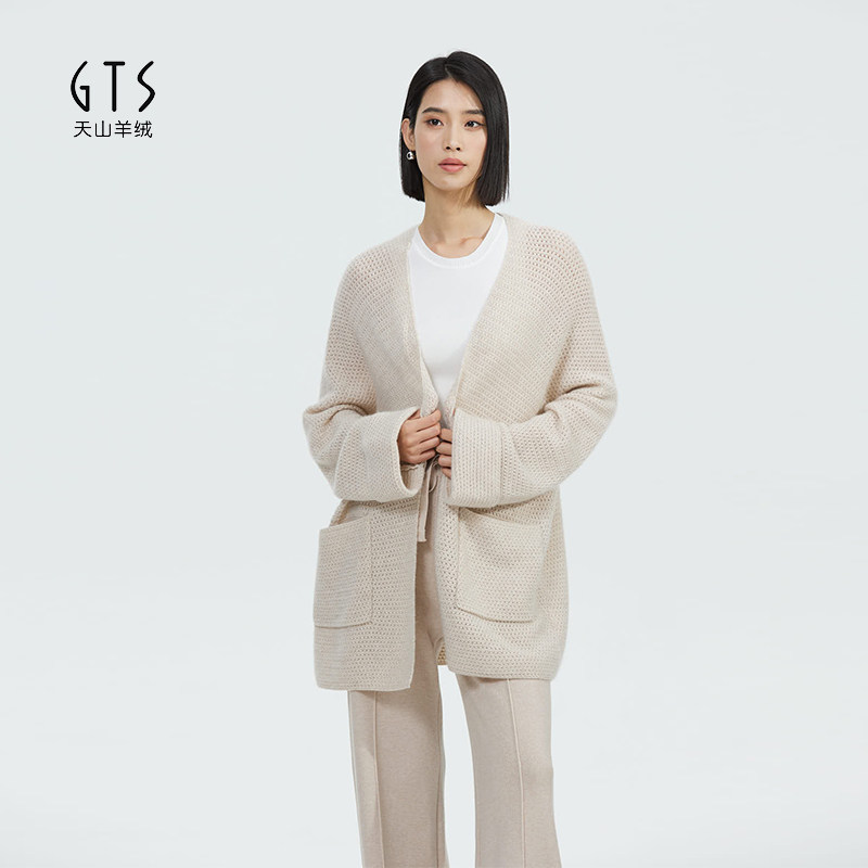 📚 GTS新疆天山V领纯羊绒开衫重工艺设计款时尚简约外套女