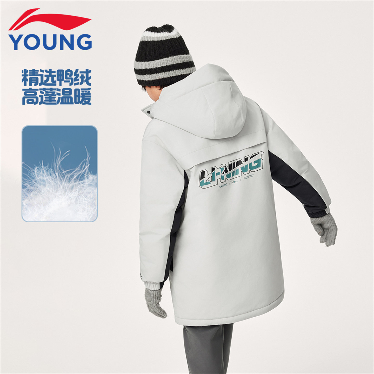 📚 李宁童装儿童中长款羽绒服男童2025秋冬款青少年工装加厚保暖外套