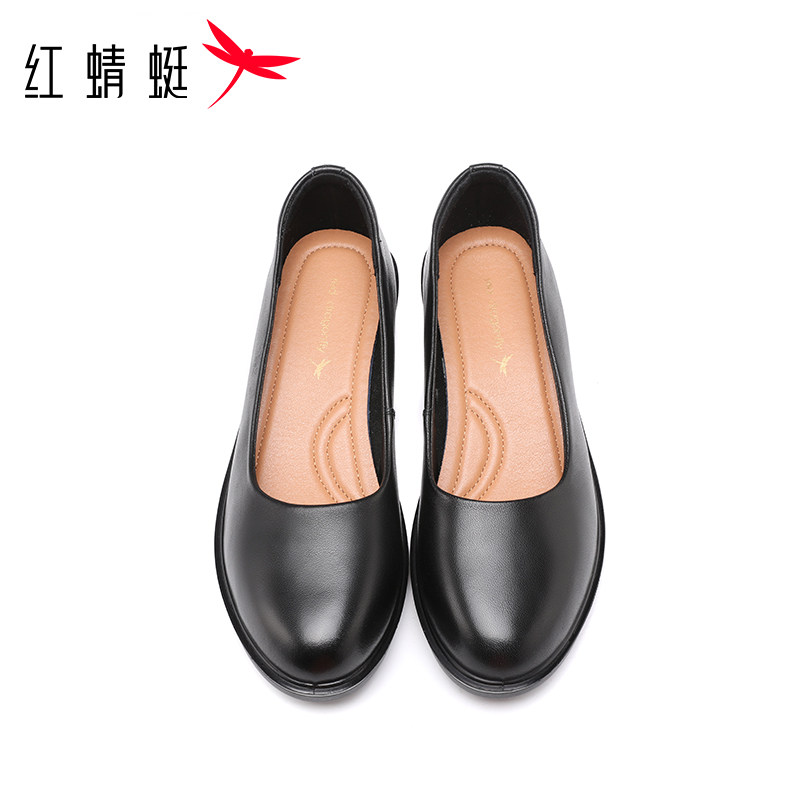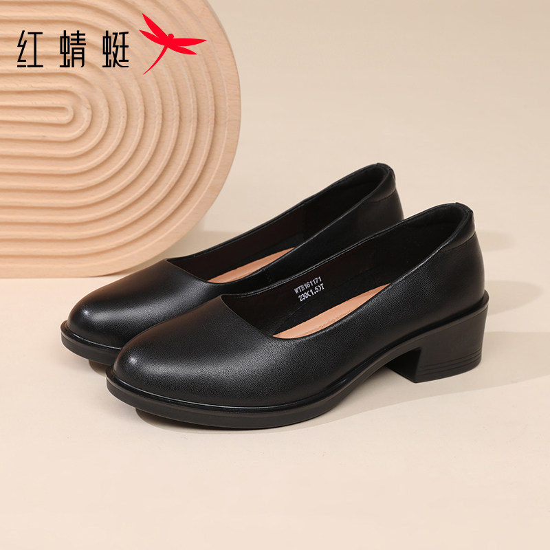 📚 红蜻蜓官方正品女鞋头层牛皮真皮通勤工作粗跟久站不累脚软底轻便