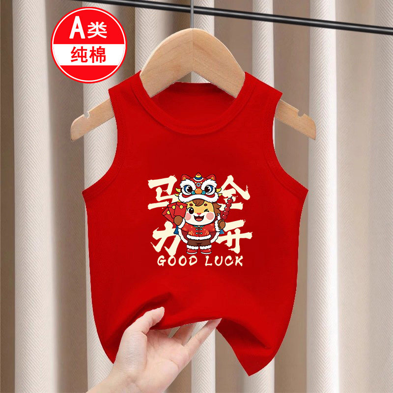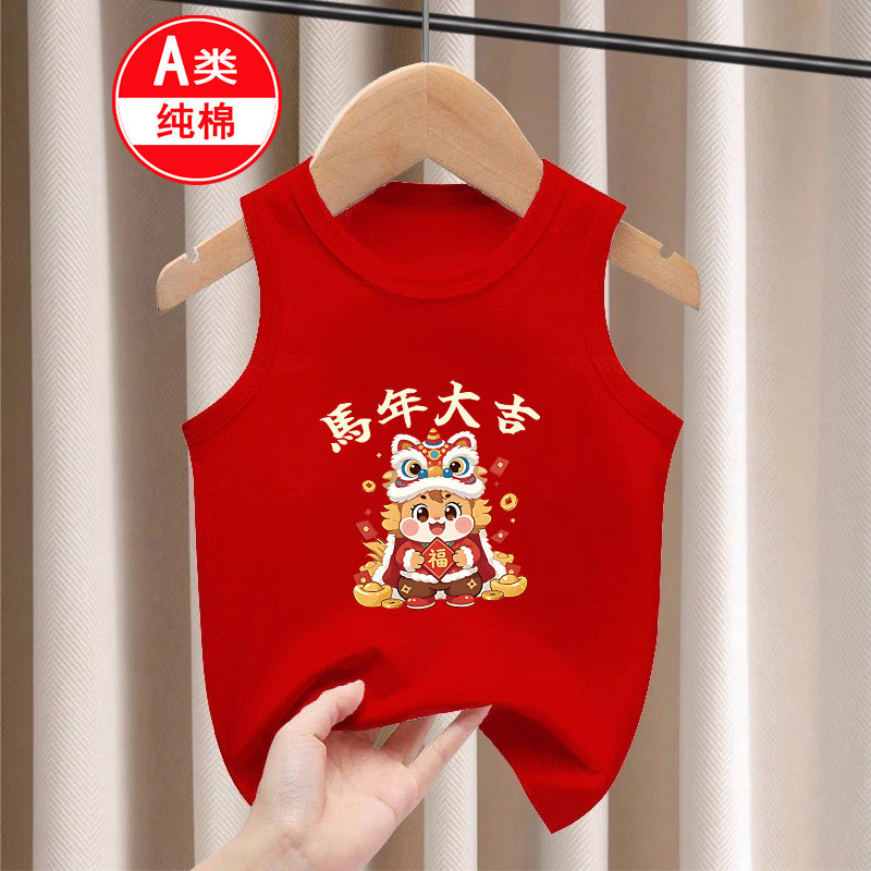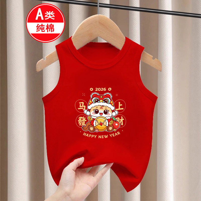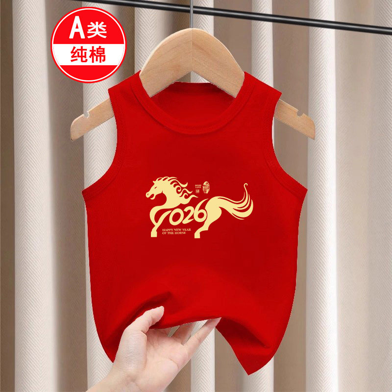 📚 2026秋冬男女童本命年宝宝无袖过年衣服纯棉马年儿童红色背心打底