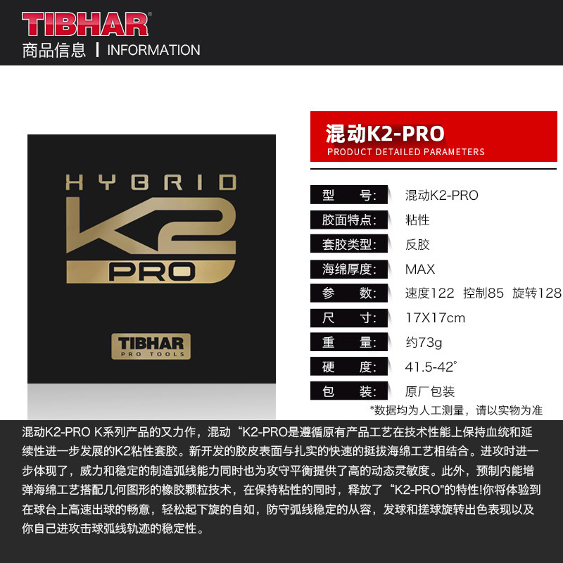 📚 TIBHAR挺拔乒乓球胶皮K2系列德国进口粘性兵乓球拍套胶专业反胶
