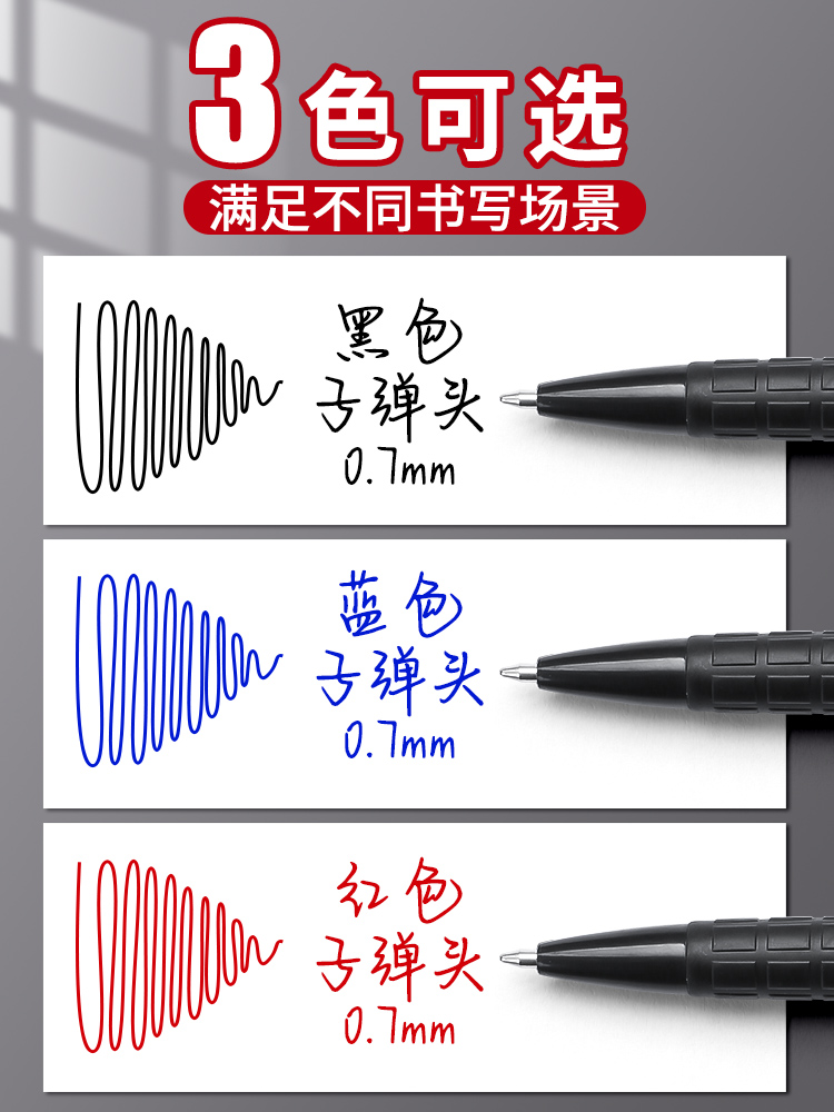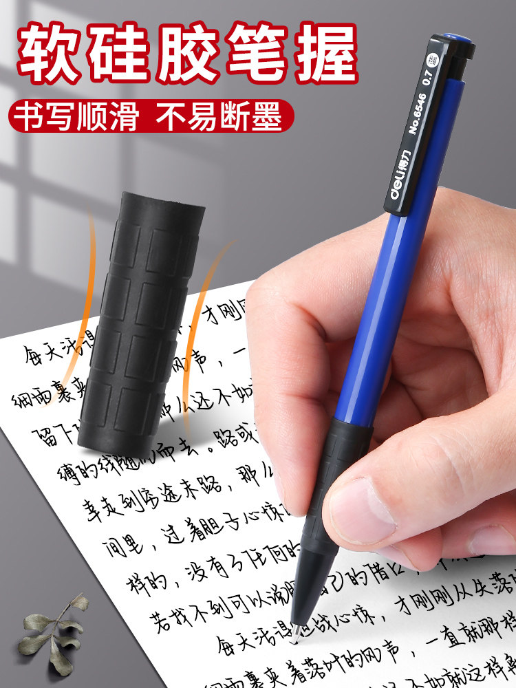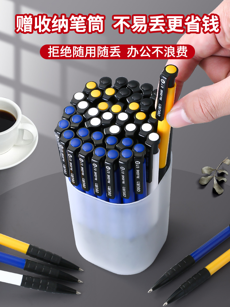 📚 得力圆珠笔按压式小学生专用正品批发蓝色红色黑色彩色油性油笔老式原子笔中性笔0.7教师红笔批改多色圆珠笔