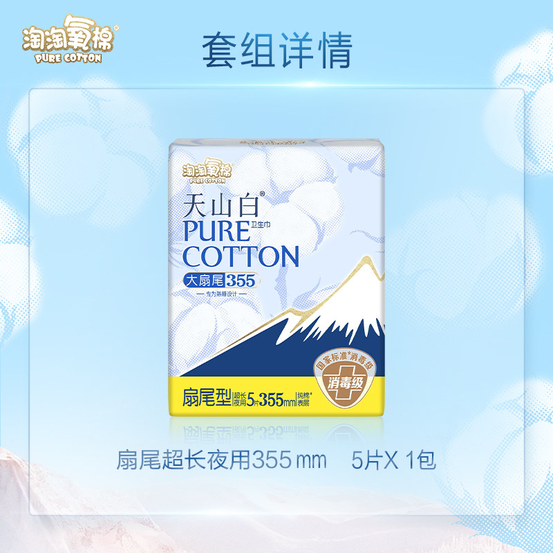 📚 【天猫U先】淘淘氧棉天山白消毒级纯棉卫生巾355mm扇尾日用5片
