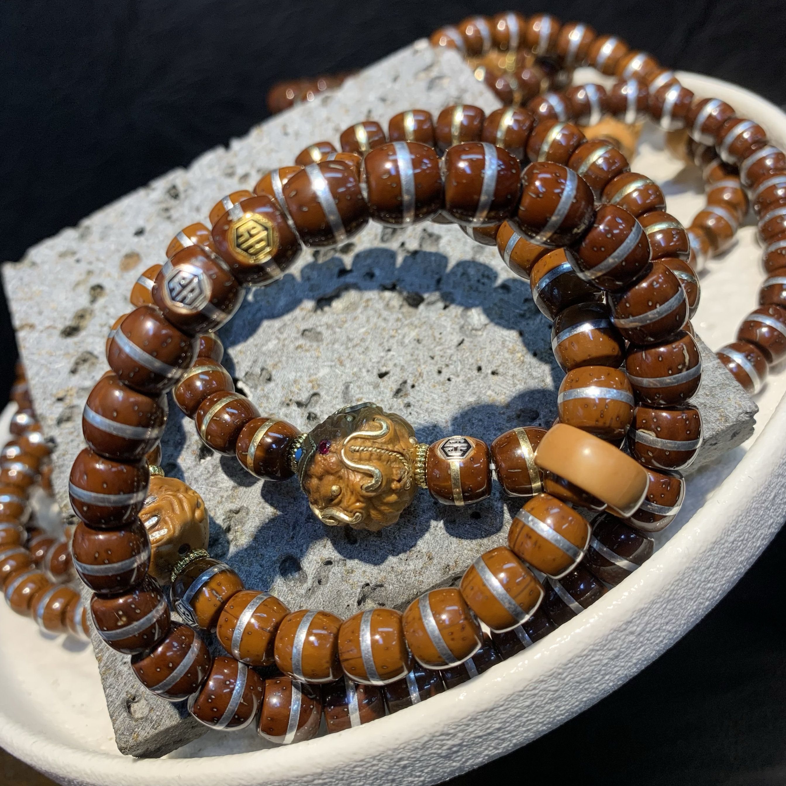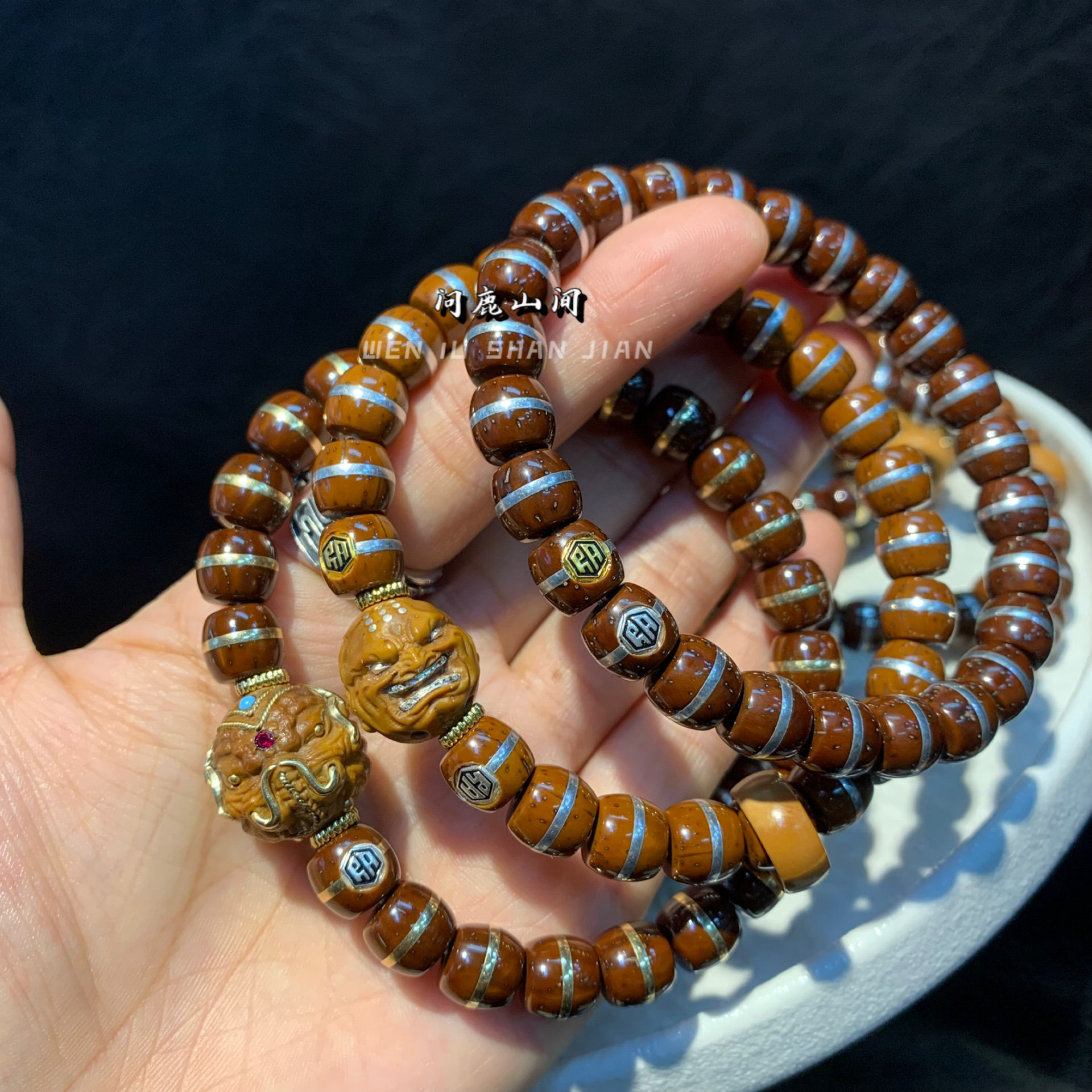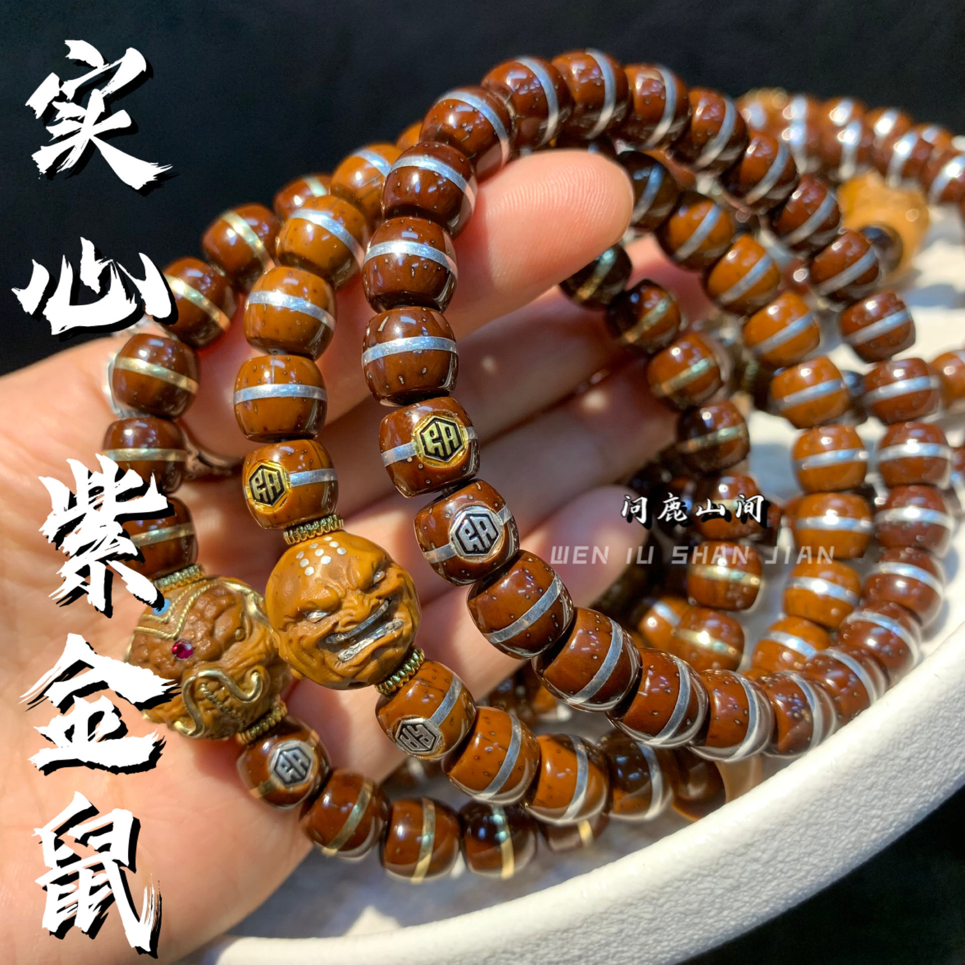 📚 实心紫金鼠 镶嵌银怒僧象神双标定制款手串