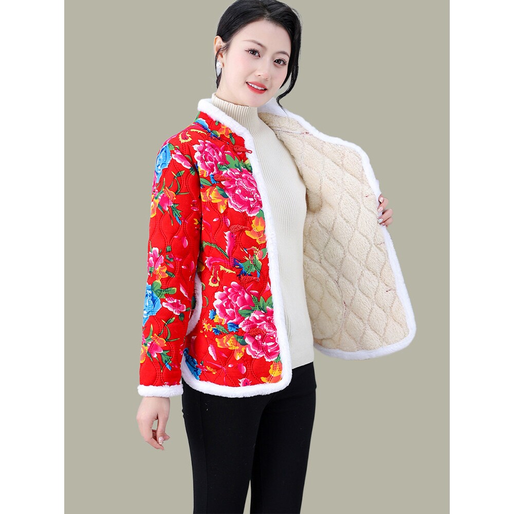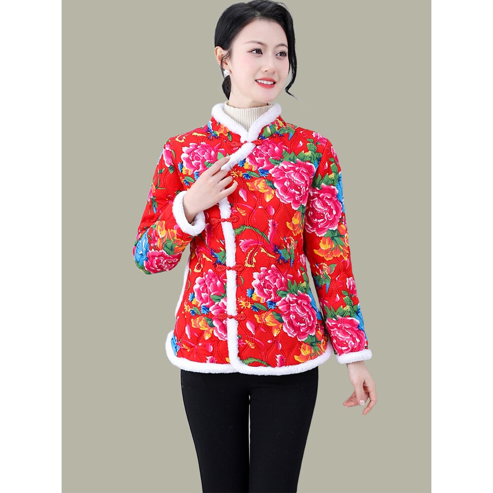 📚 东北复古大花棉袄女装2025秋冬新款加绒保暖洋气民族风小棉衣外套
