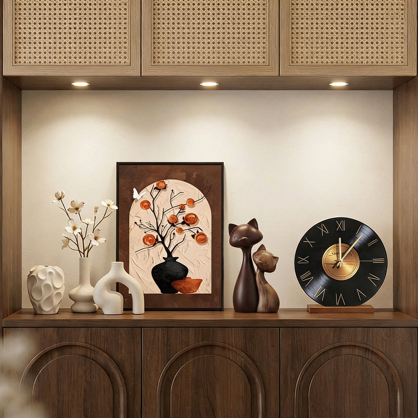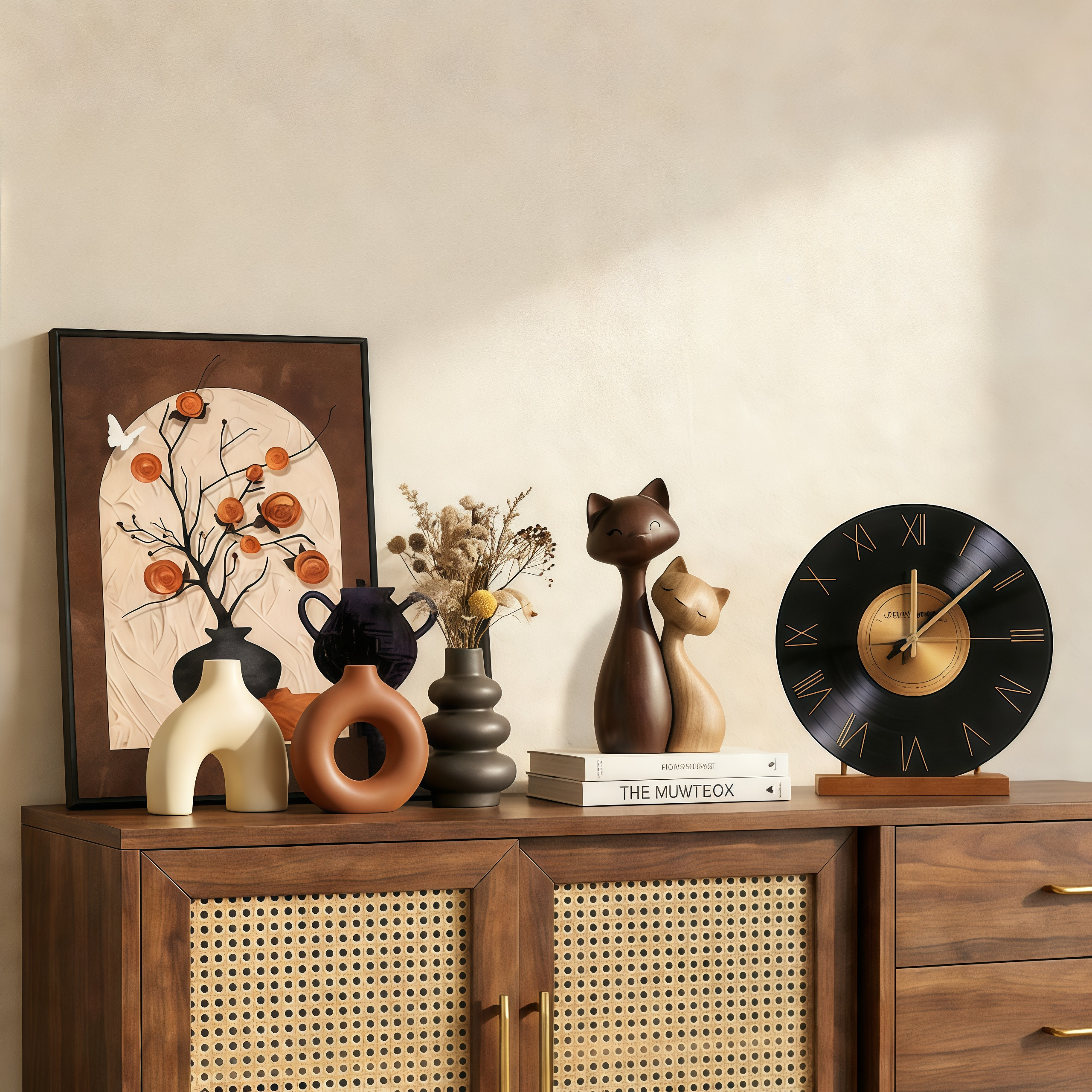 📚 中古风复古入户玄关仿木制艺术摆件客厅电视柜餐边柜小众高级装饰