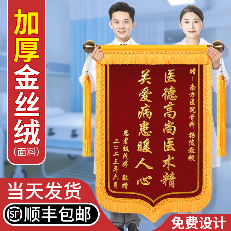 📚 金丝绒锦旗定做感谢医生送老师幼儿园锦旗订做感谢派出所民警律师物业管家月嫂还愿仙家旌旗驾校教练生娃锦旗