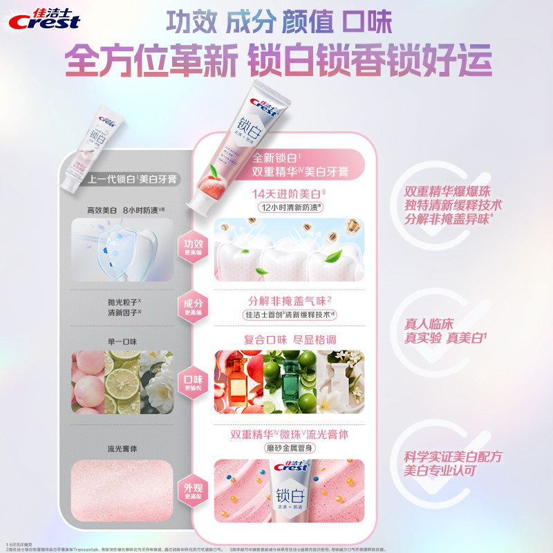 📚 【重磅新品】佳洁士锁白牙膏成人双重精华防渍口气清新正品