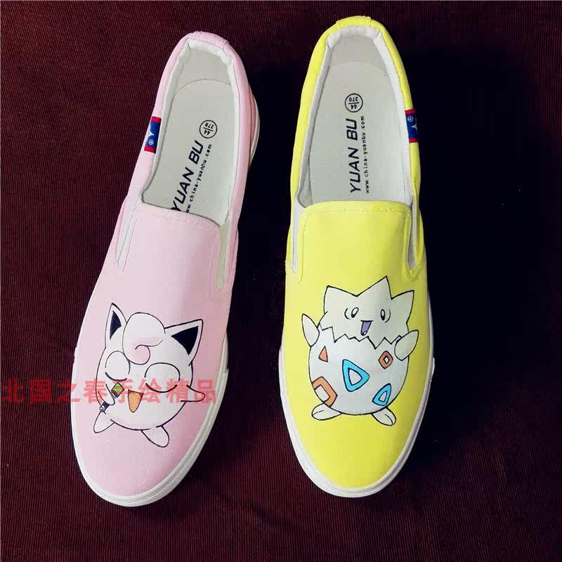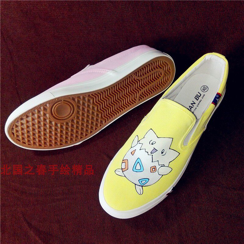 📚 手绘帆布鞋夏男女低帮一脚蹬波克比胖丁动漫涂鸦鞋学生情侣休闲鞋