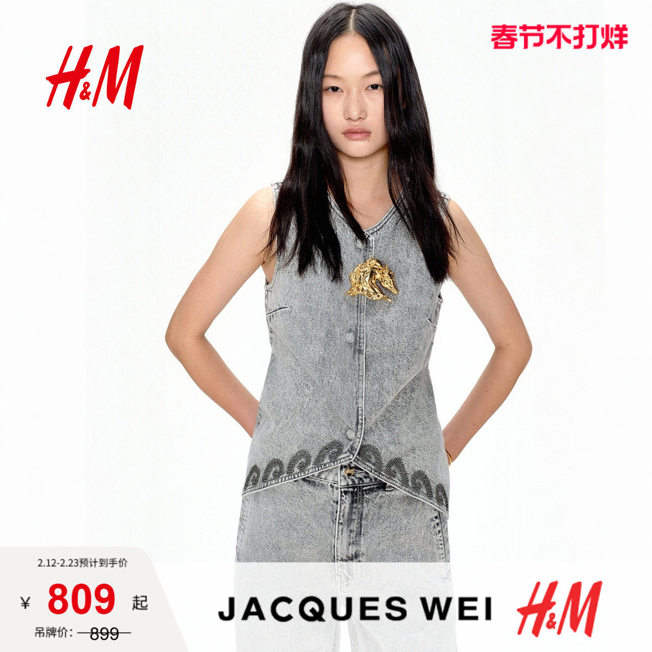 98¥ HU071 AKj5UneBezN¥ https://m.tb.cn/h.7xde7Q3 JACQUES WEI H&M女装马夹2026春季新款珠饰无袖牛仔马甲1320582 --------------------- 【原售价】899元 【现售价】899元。