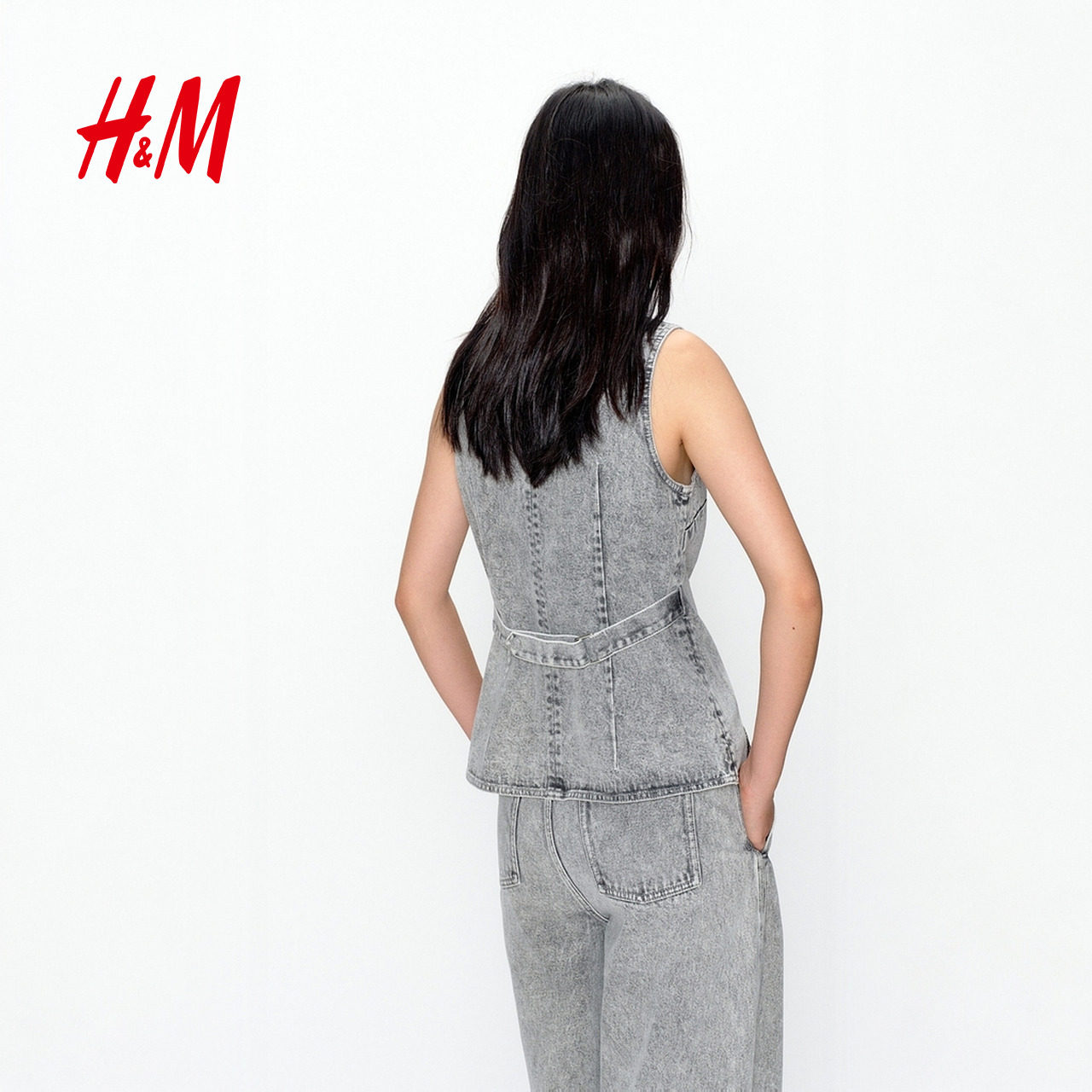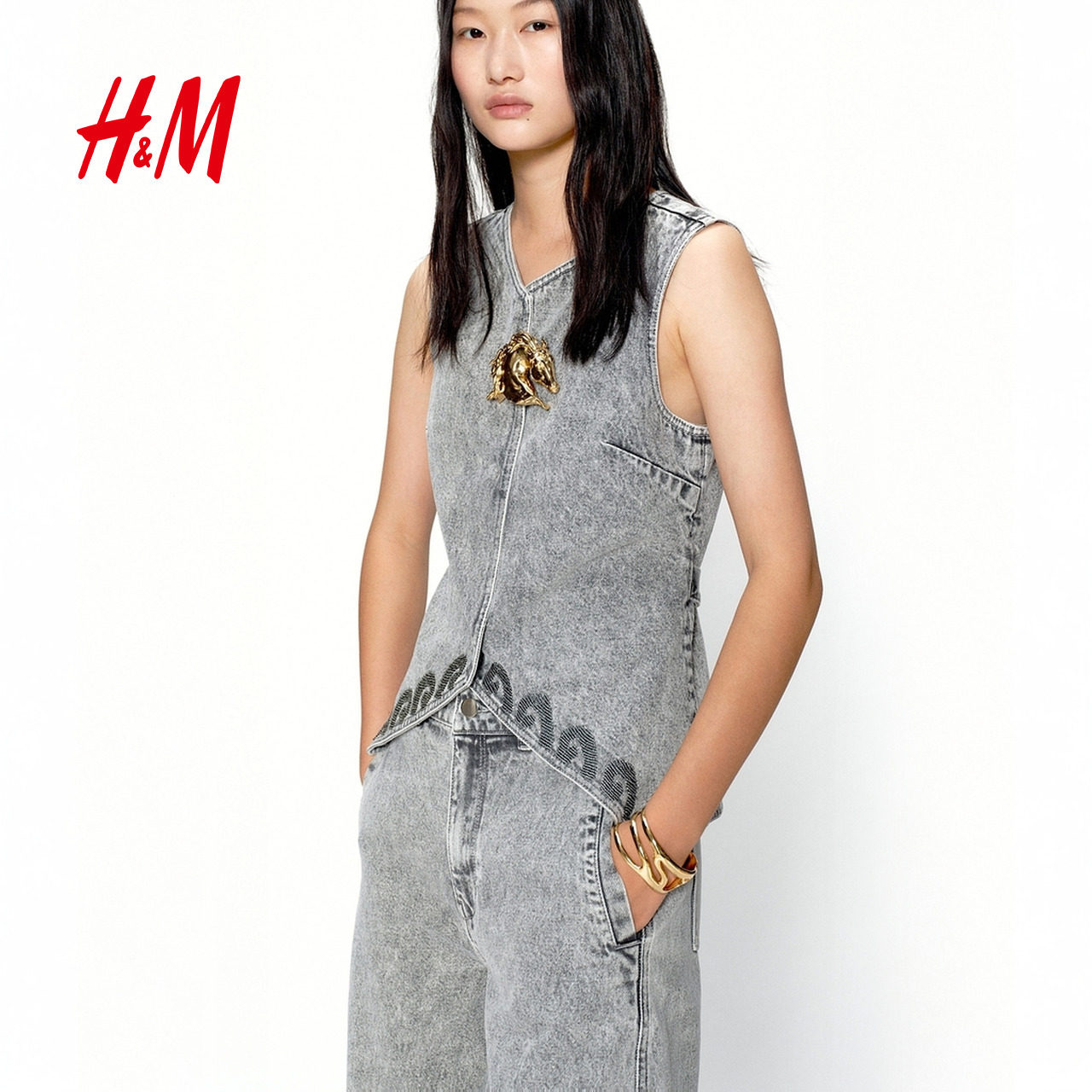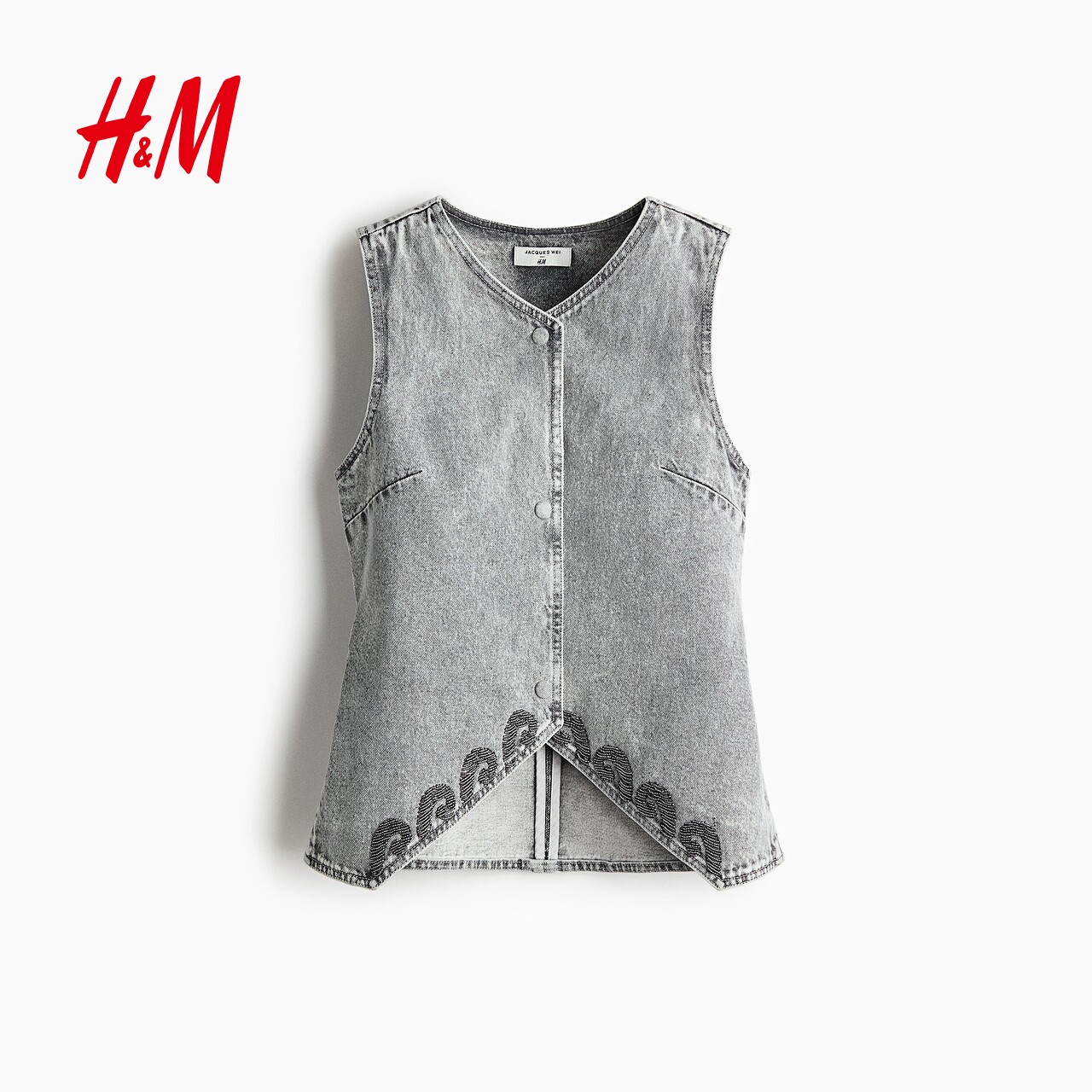 📚 JACQUES WEI H&M女装马夹2026春季新款珠饰无袖牛仔马甲1320582
