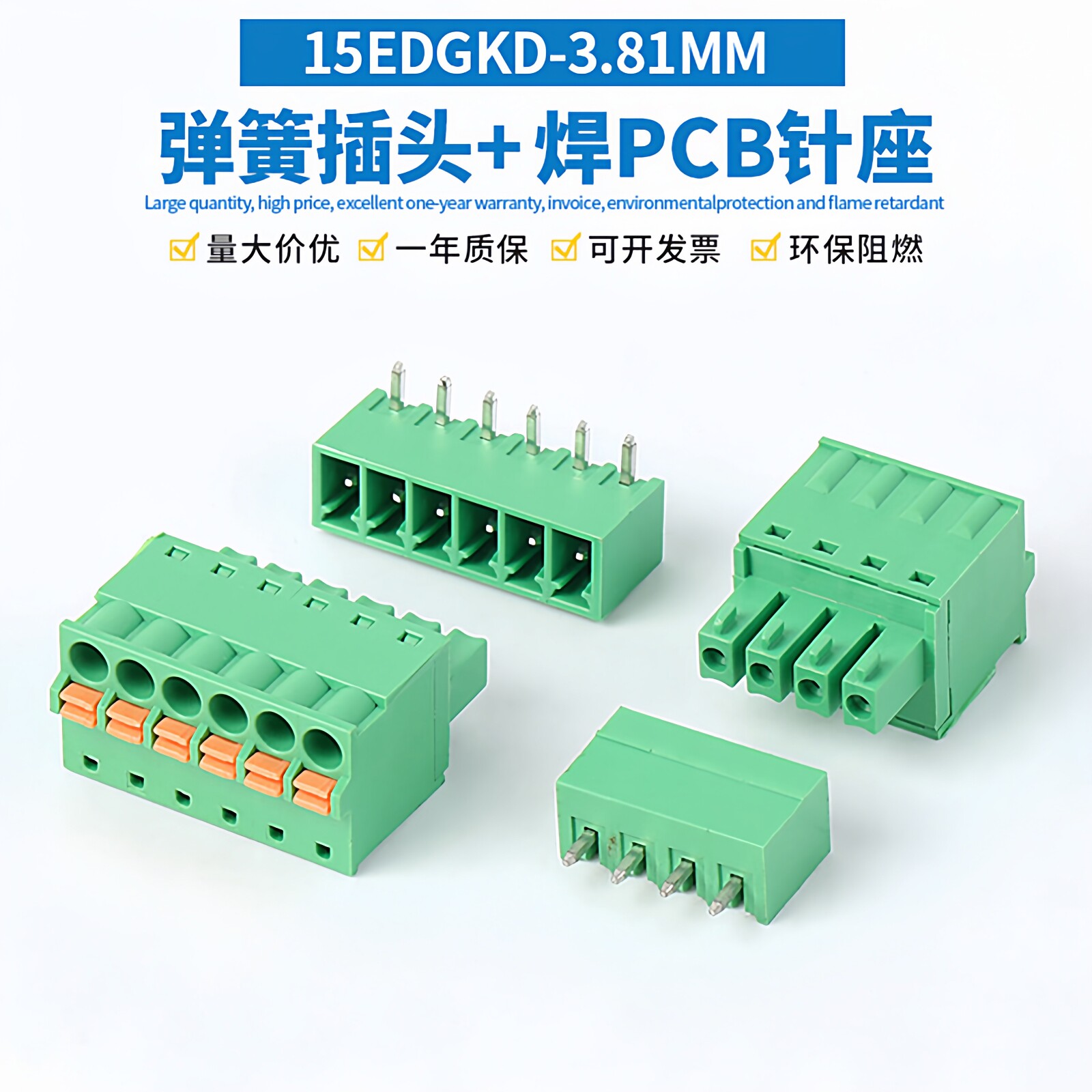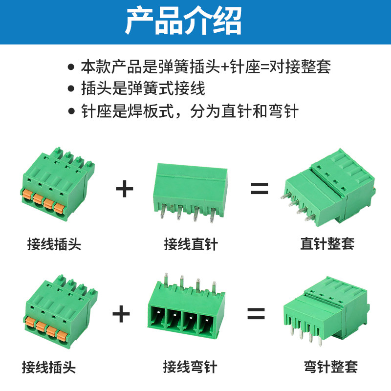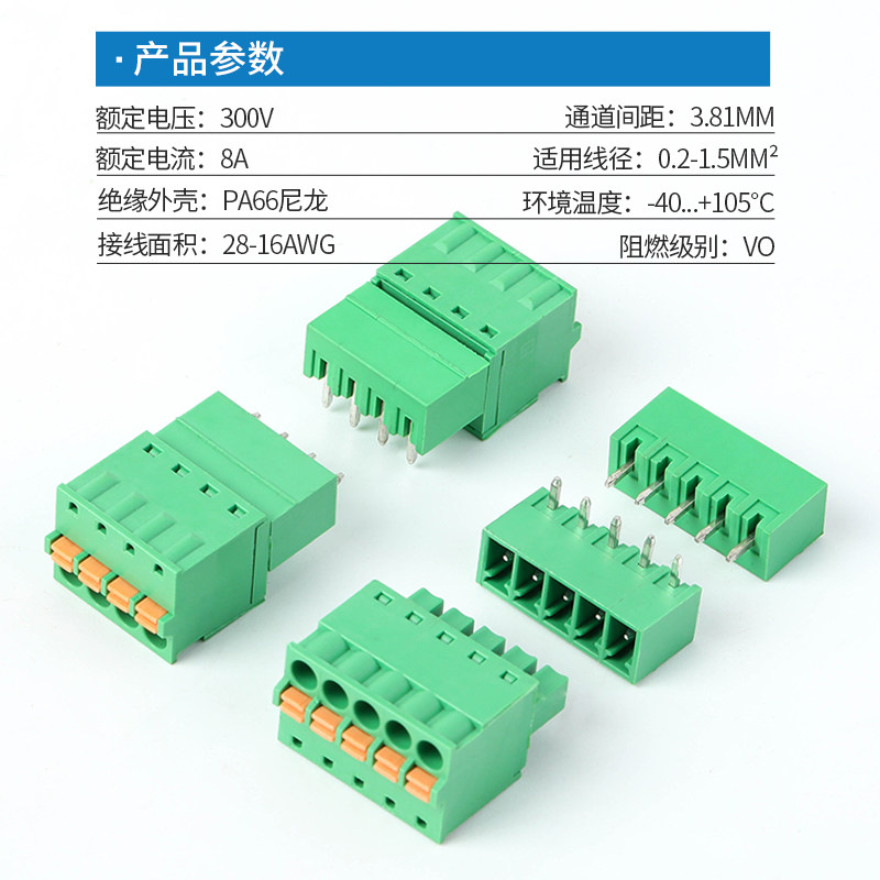 📚 免螺丝按压弹簧式接线端子15EDGKD-3.81焊PCB板插拔式直/弯针整套