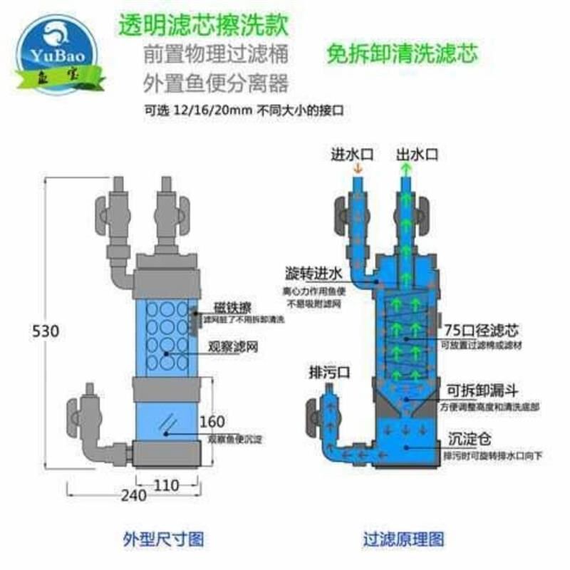 📚 鱼便分离器鱼缸过滤桶前置桶沉淀桶自制桶鱼马桶S循环过滤桶鱼便