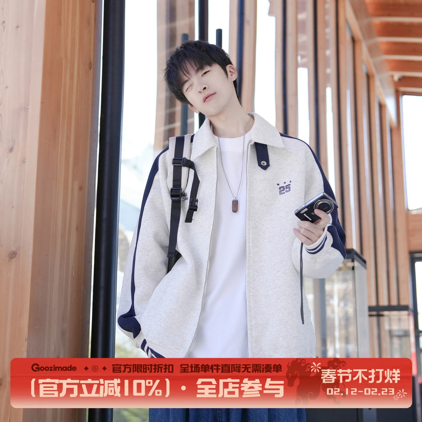 📚 GOOZI MADE 刺绣撞色立领外套男春秋季美式学院风休闲运动夹克