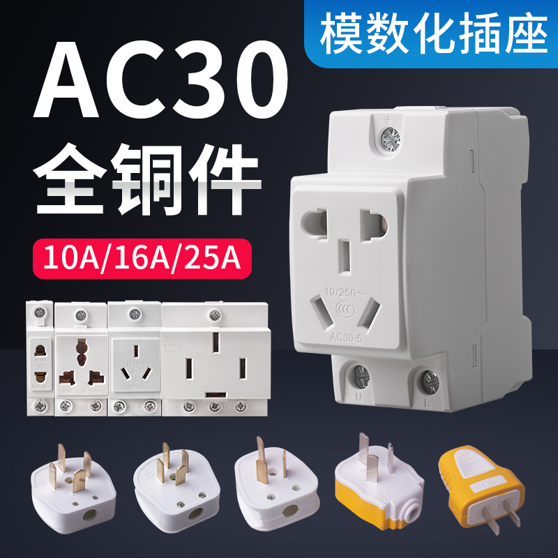 📚 AC30模数化插座16A导轨式配电箱插座10A 25A模块五孔二三插插座
