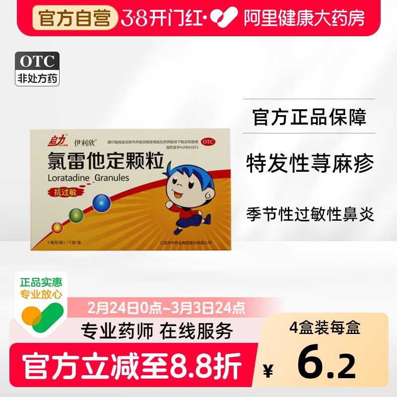 📚 伊利欣氯雷他定颗粒儿童过敏医药小儿抗过敏旗舰店药房药氯雷