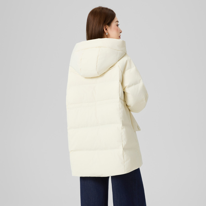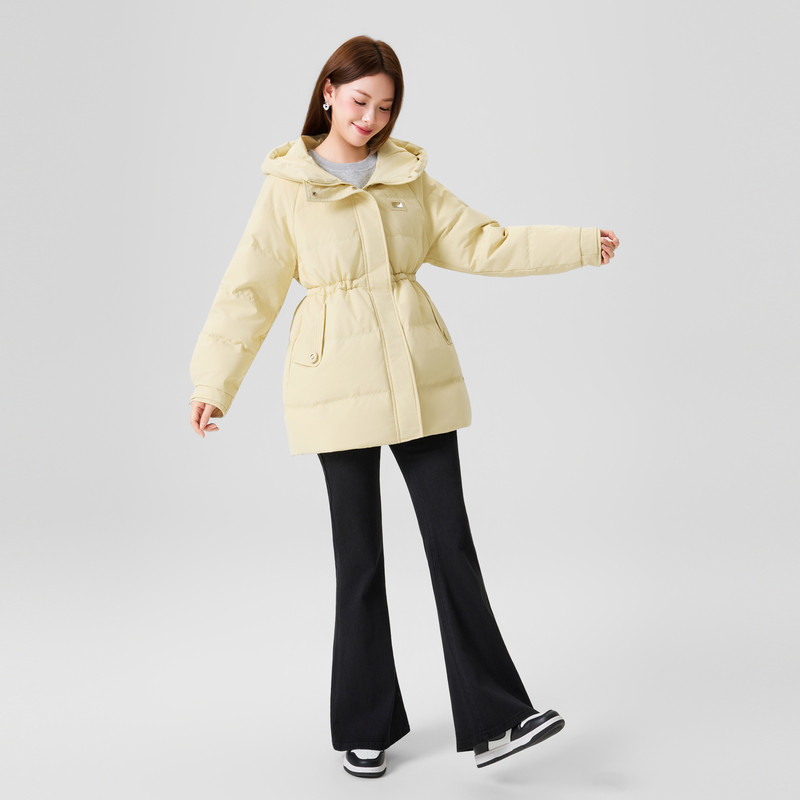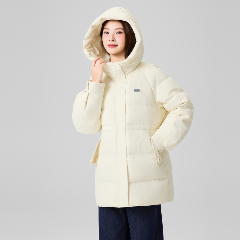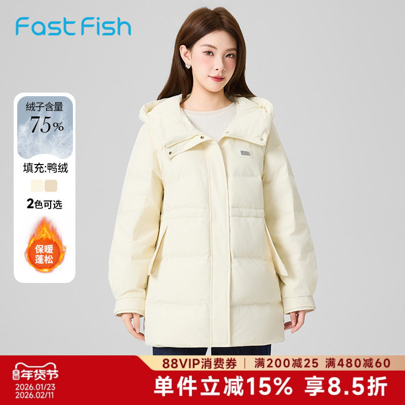 📚 快鱼2025年冬季新女款中长羽绒服收腰显瘦葫芦提花连帽羽绒衣外套