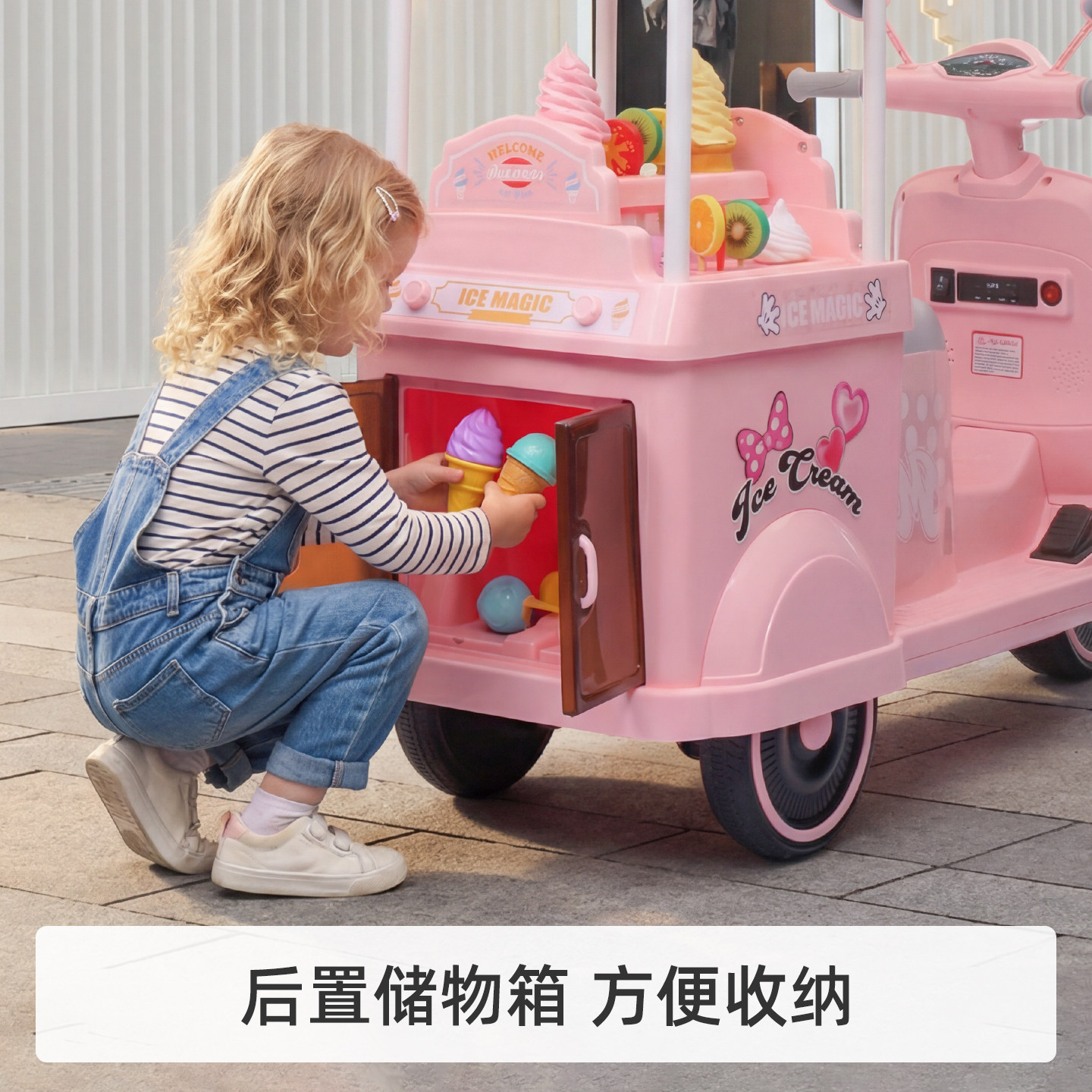 📚 巴比特冰激凌电动车儿童摩托车1到3岁2026新款婴儿宝宝可坐三轮车