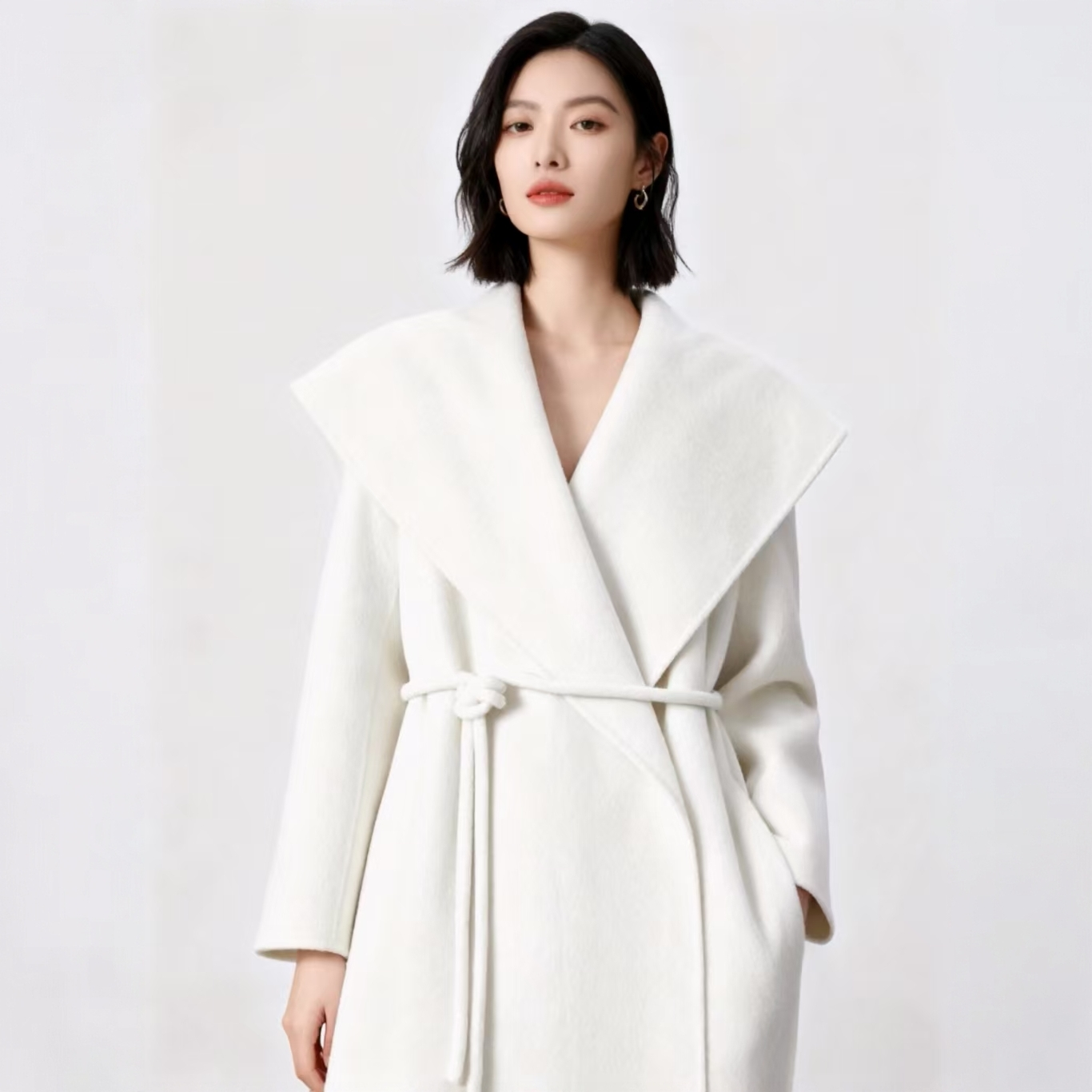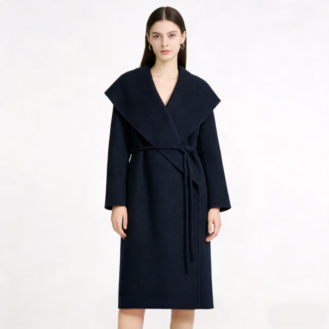 📚 【牦牛绒+澳毛】海伦娜轻奢廓形大翻领秋冬长款女双面呢大衣外套
