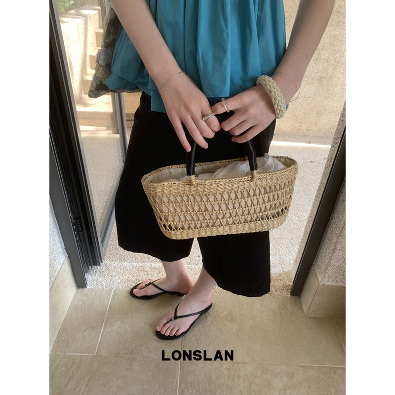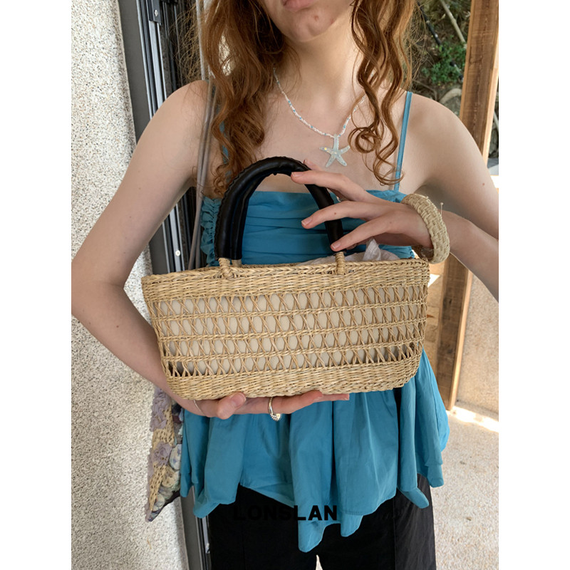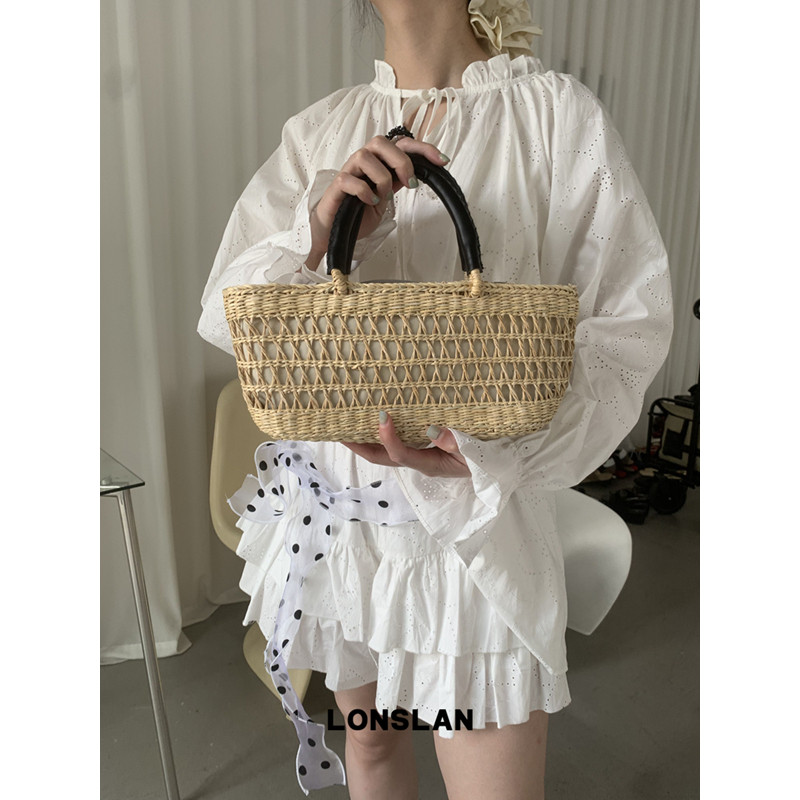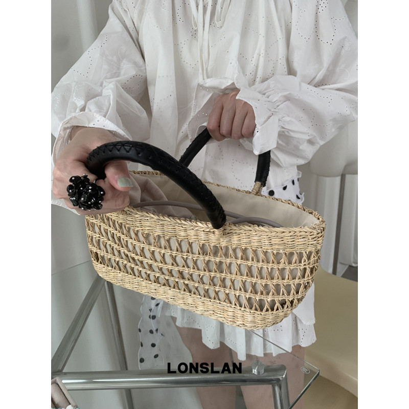 📚 Lonslan BAG 2025 NEW 法式复古镂空度假立型手提菜篮子草编包