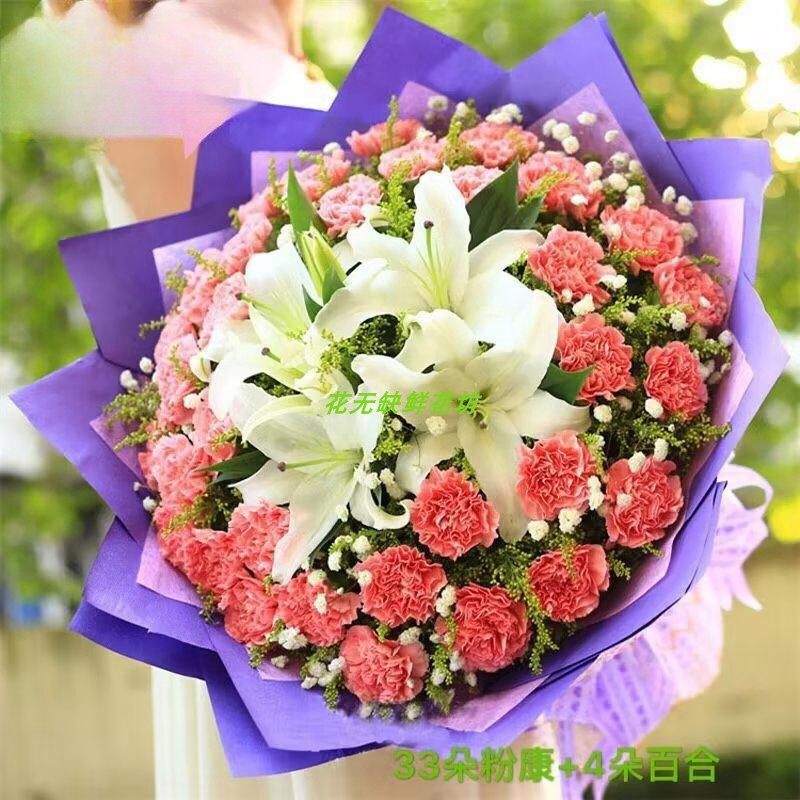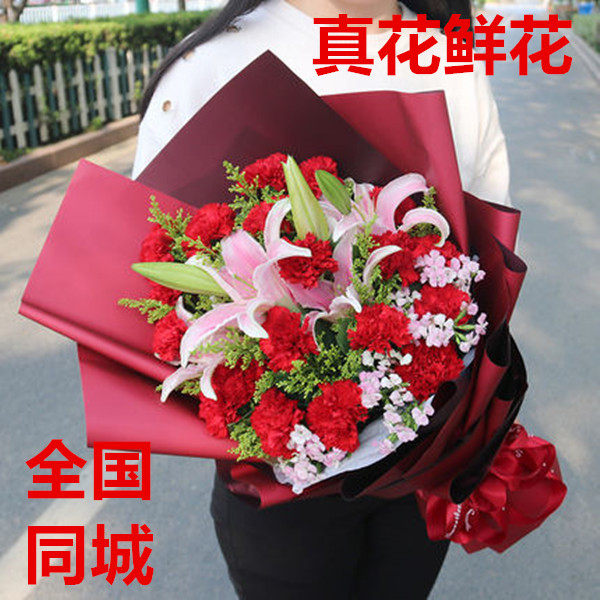 📚 真花母亲节康乃馨花束送长辈老师生日鲜花速递全国同城广州北京店