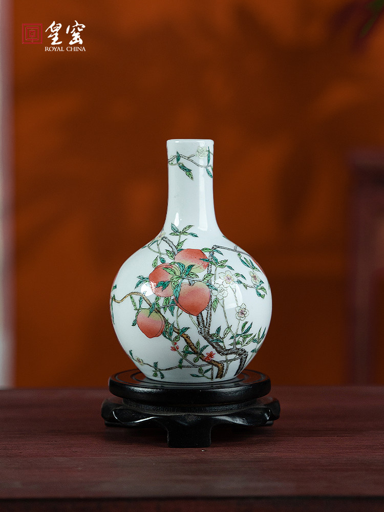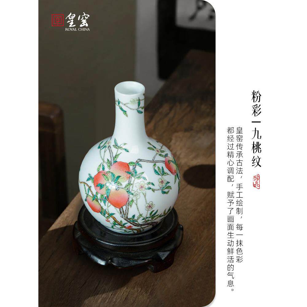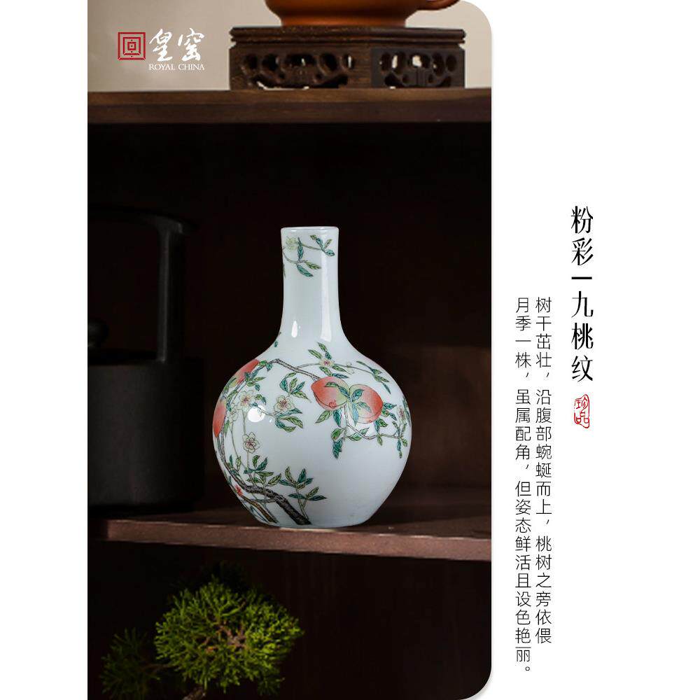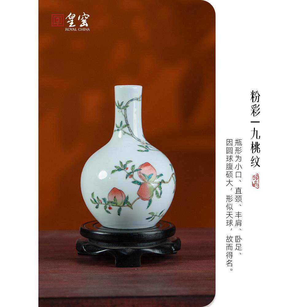 📚 御窑手绘九桃天球瓶景德镇陶瓷花瓶客厅入口迷你小高雅装饰品