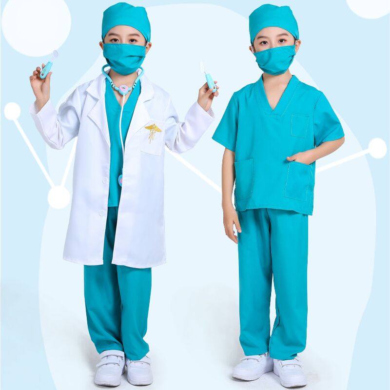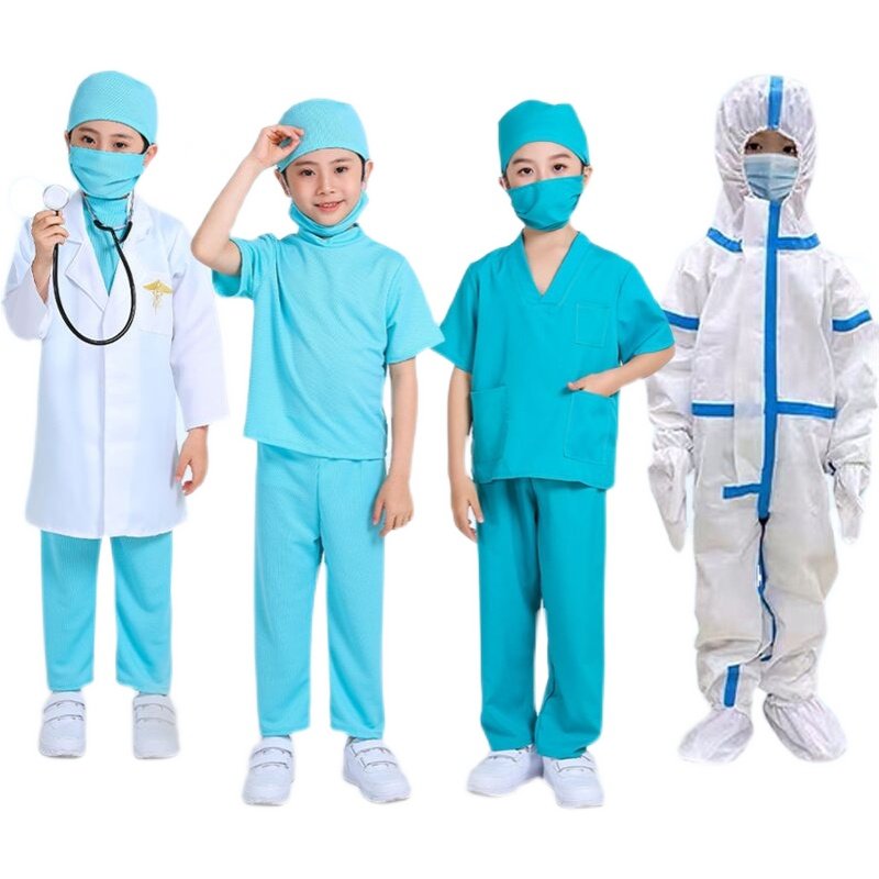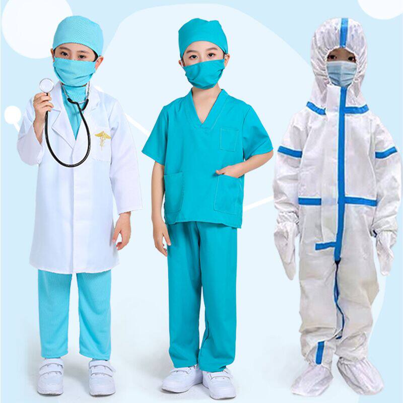 📚 儿童抗疫演出服小医生手术服护士疫情防护服幼儿白大褂长袖表演服
