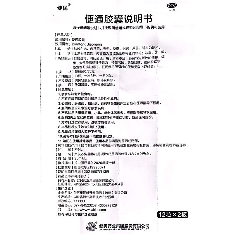 📚 龙牡健民药业便通胶囊润肠通便原发性习惯性便秘健脾益肾大便秘结