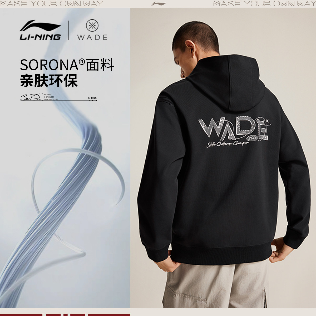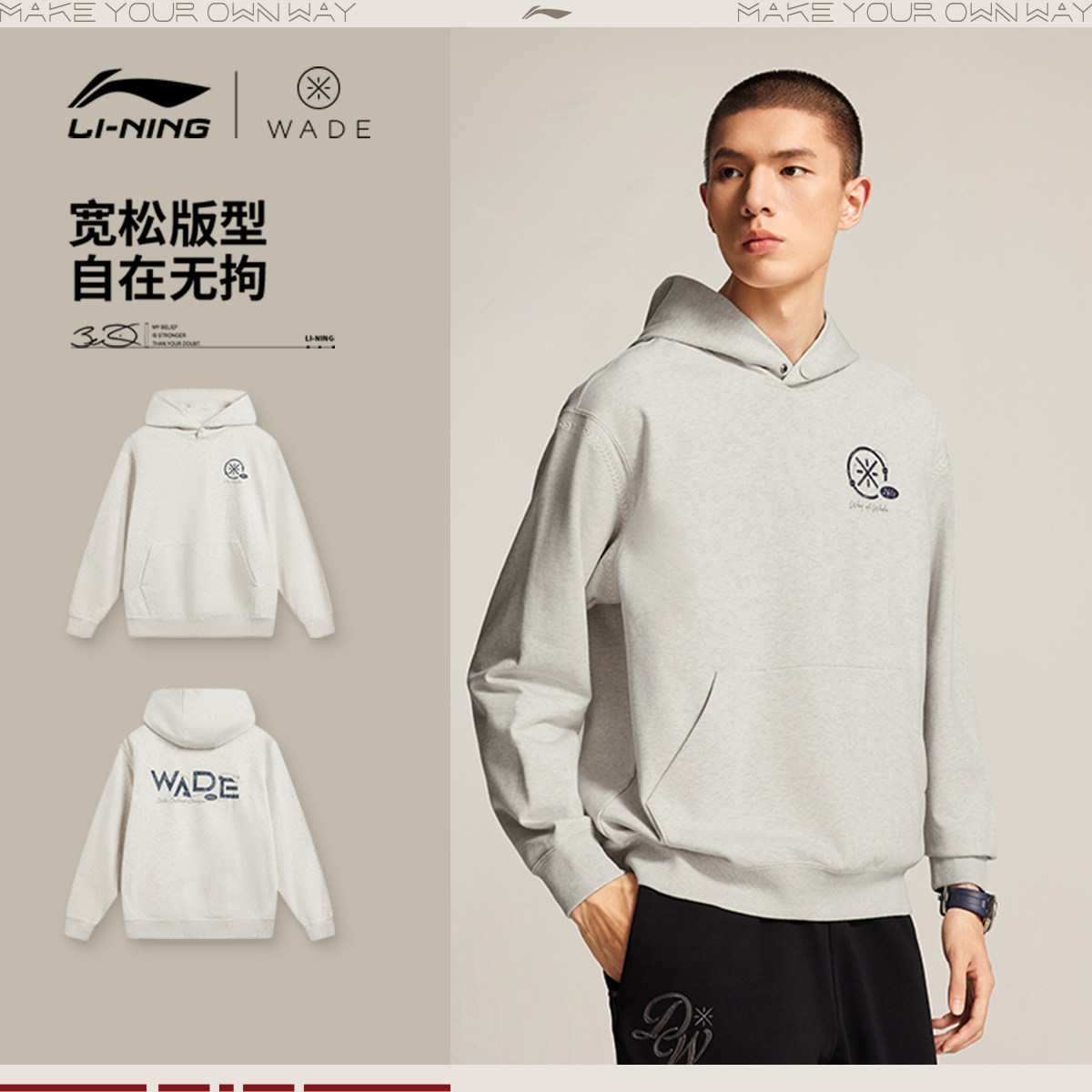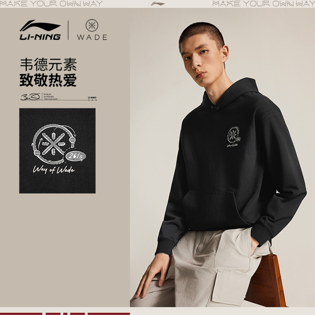 📚 李宁卫衣男春季2026新款韦德男装休闲长袖连帽上衣毛圈针织运动服