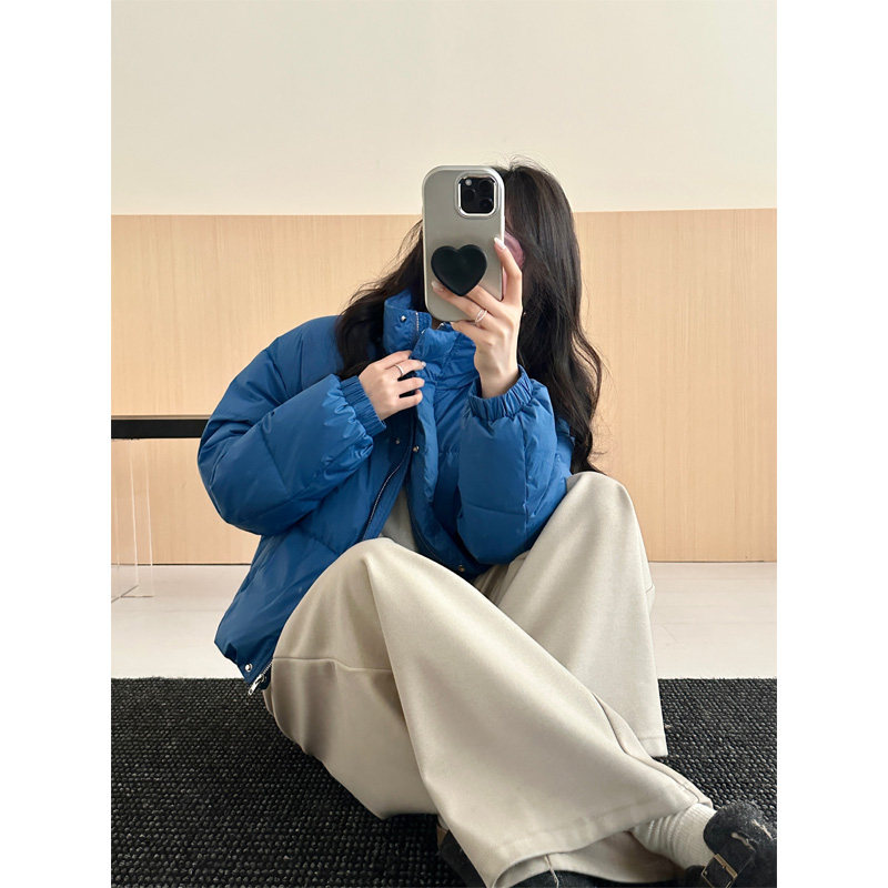 📚 高充绒量蓝色立领短款羽绒服女2025冬季新款韩版加厚90白鸭绒外套