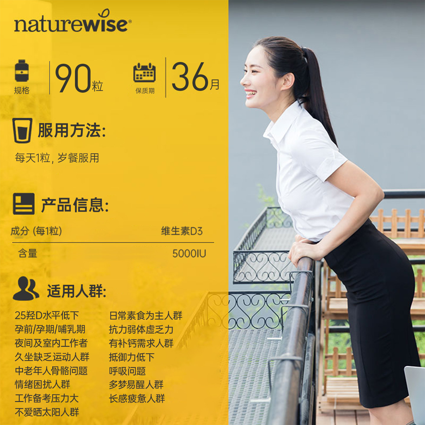 📚 Naturewise阳光瓶维生素d3活性维生素d5000iu备d孕妇成人vd维d3