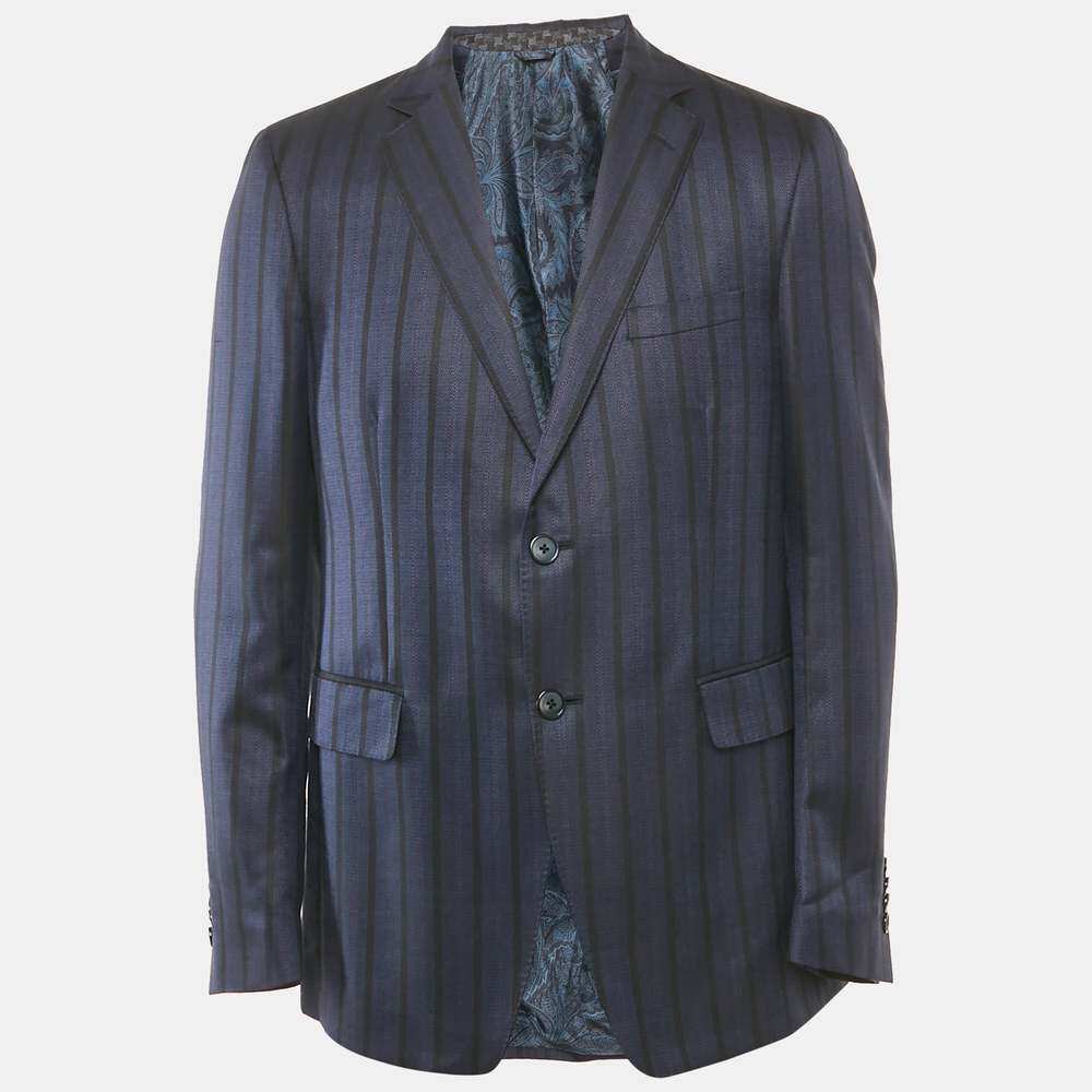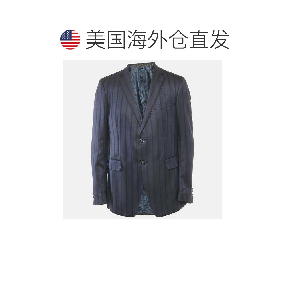 📚 自营Etro Blue Striped Silk Blend Single Breasted Blazer - bl